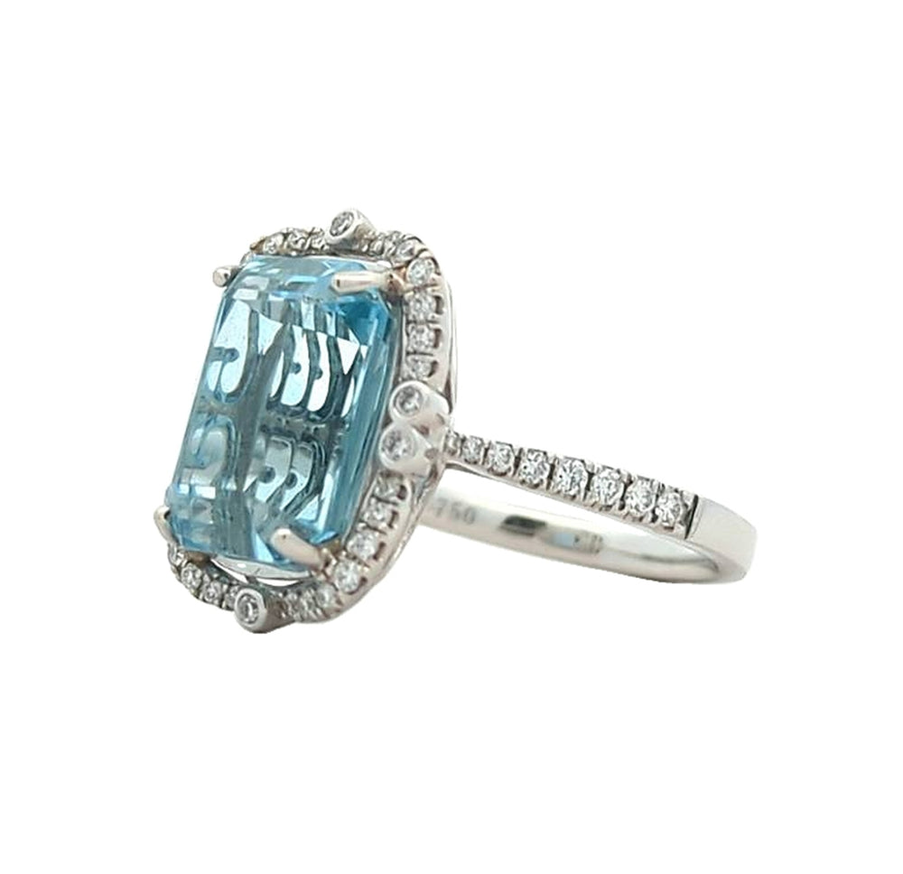18KT White Gold Aquamarine and 0.36ctw Diamond Estate Ring