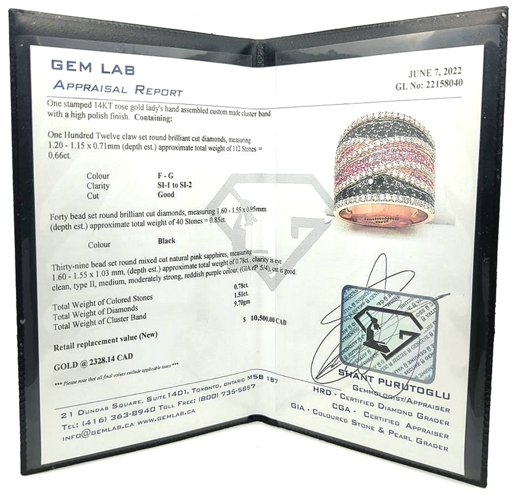 Total Weight of Cluster Band 9.70gm