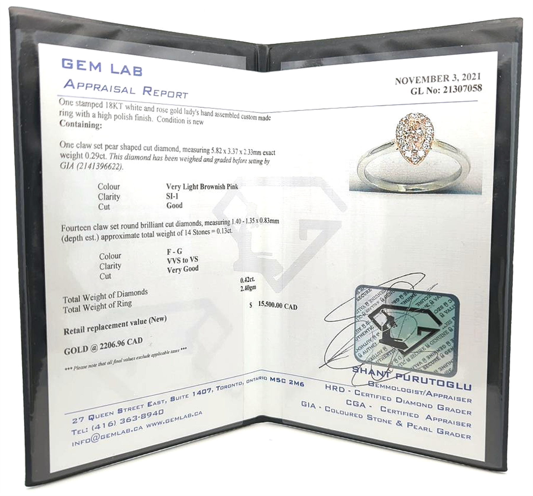 Retail Replacement Value (New) $15,500.00 CAD