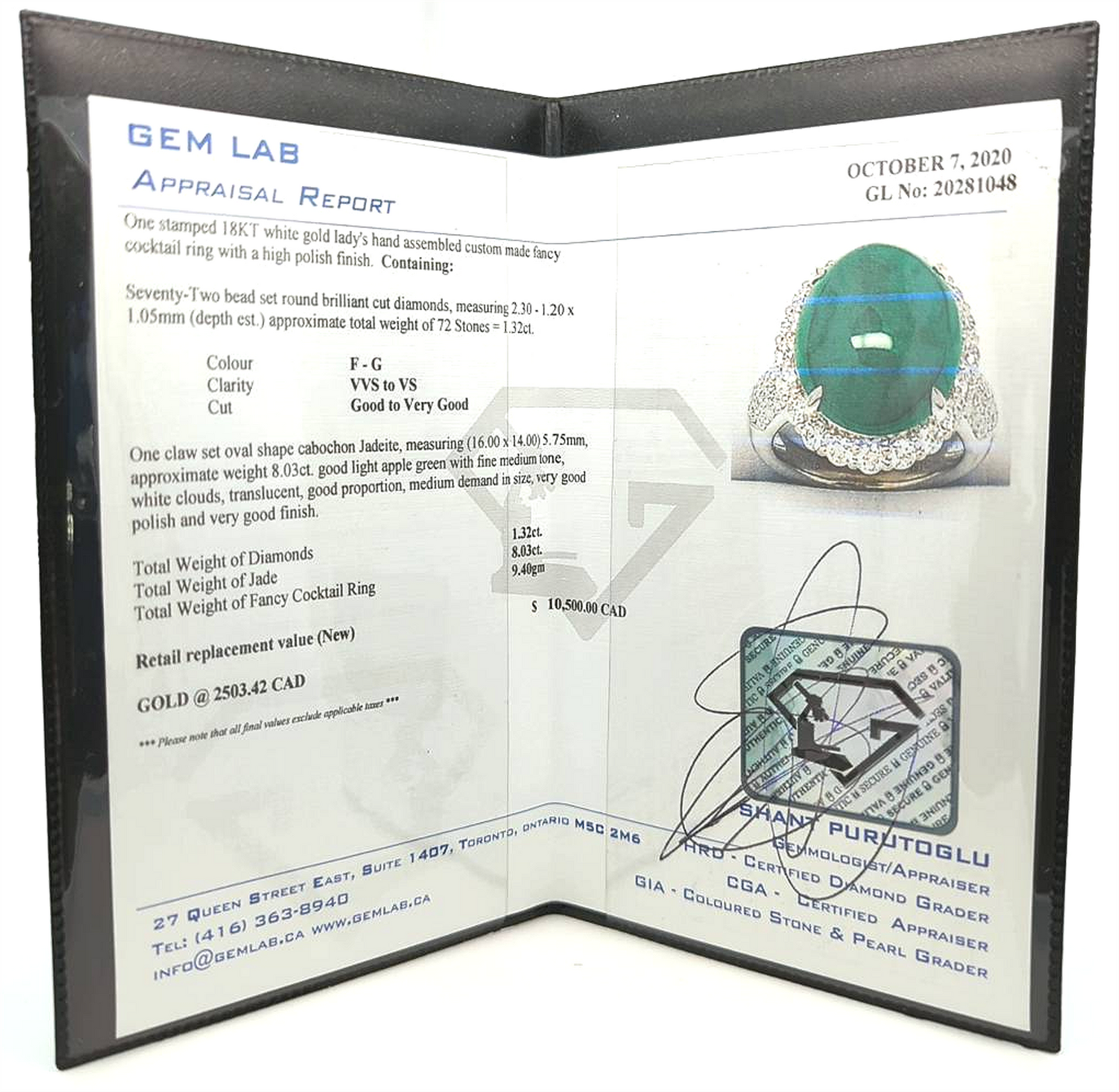 18KT White Gold Jadeite and 1.32ctw Diamond Fancy Estate Cocktail Ring