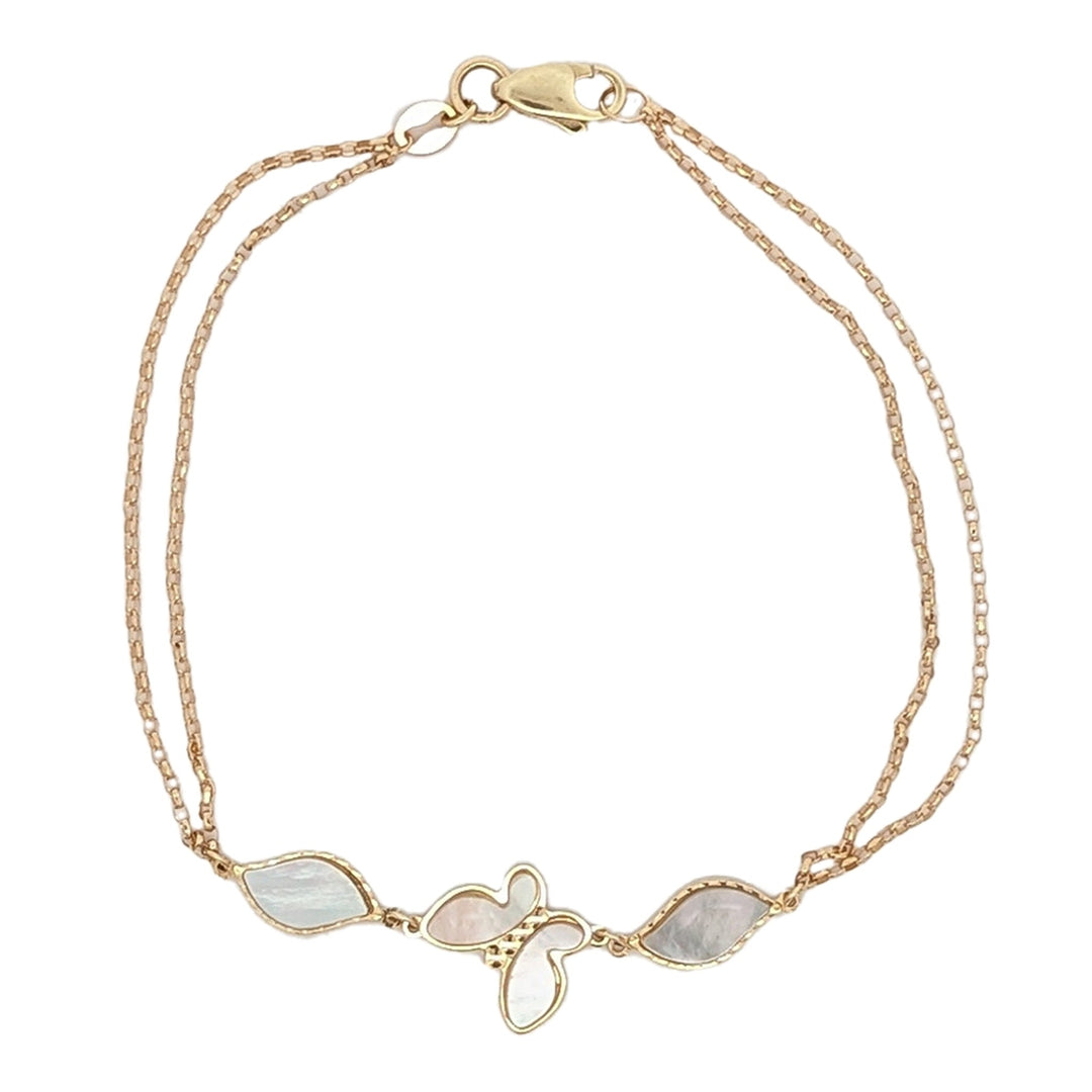 10K Yellow Gold Butterfly Mother Of Pearl 7" Bracelet