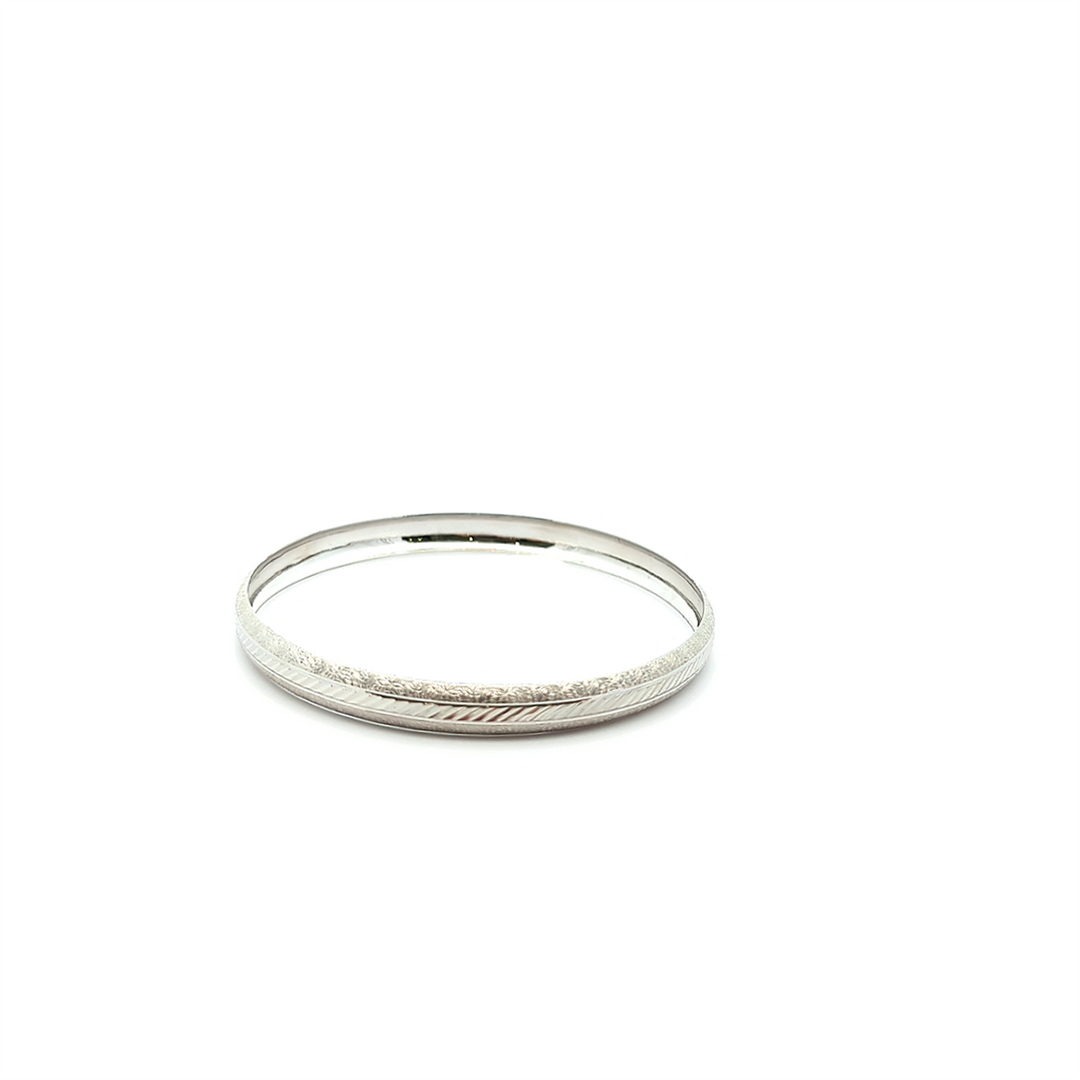 14KT White Gold Diamond Cut Bangle