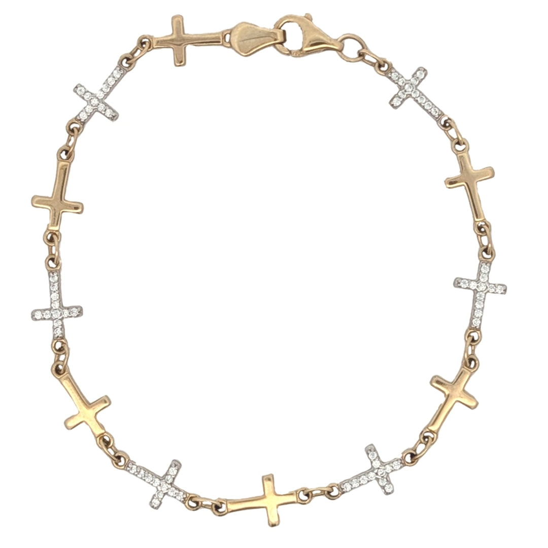 10KT Yellow Gold CZ Cross 7.5" Bracelet