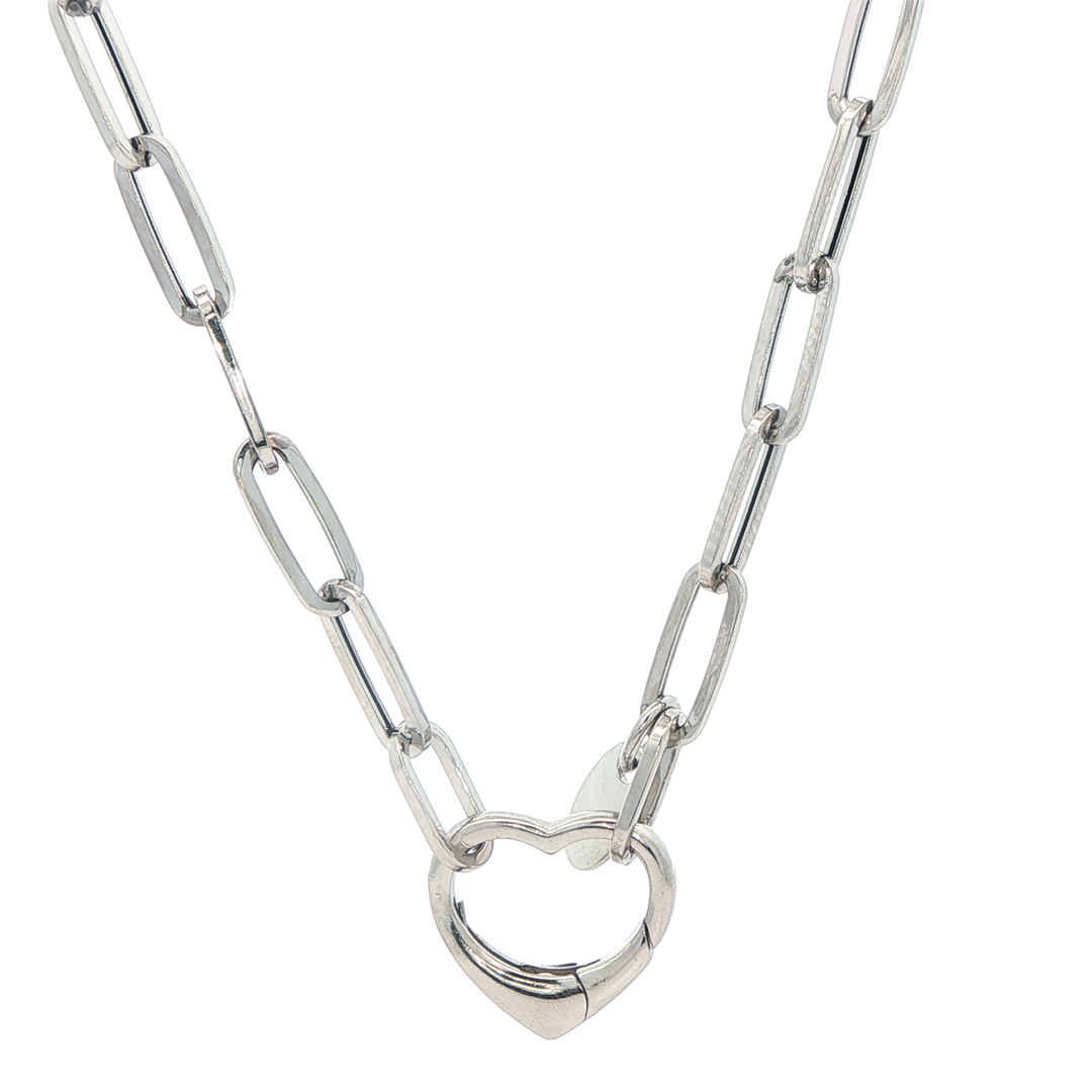 10K White Gold 3mm Paperclip Heart Clasp 17.75" Chain