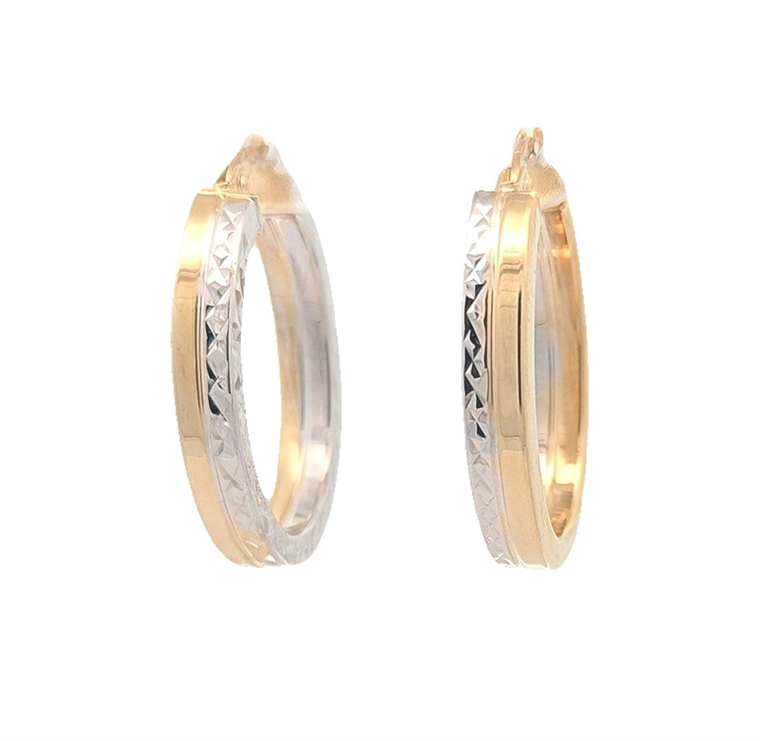 10K Two-Tone Gold Diamond Cut Oval Hoop Earrings
