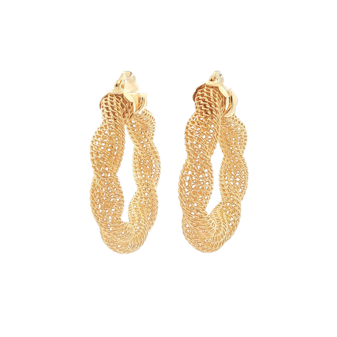 14K Yellow Gold Twisted Mesh 20mm Hoop Earrings