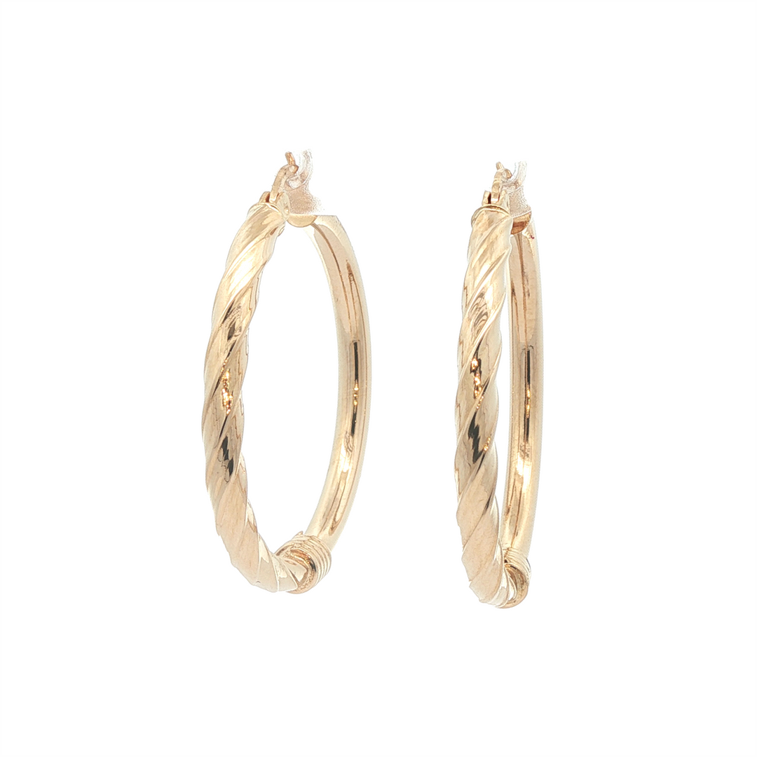 14K Yellow Gold Twisted 27mm Hoop Earrings