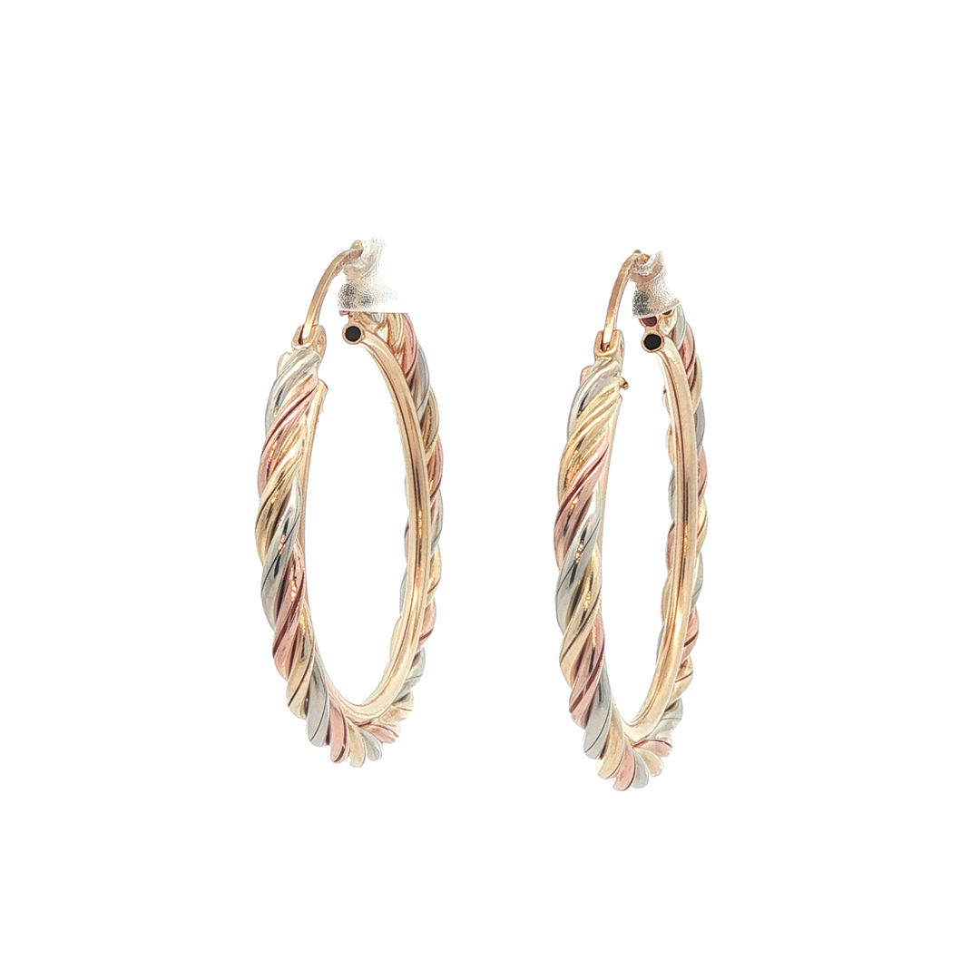 10K Tri-Coloured Gold 21mm Twisted Hoop Earrings