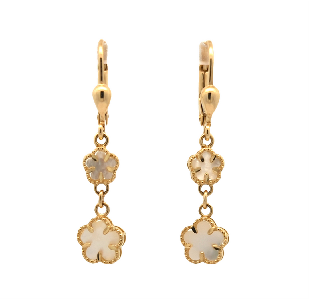 10KT Yellow Gold Mother of Pearl Flower Drop Earrings
