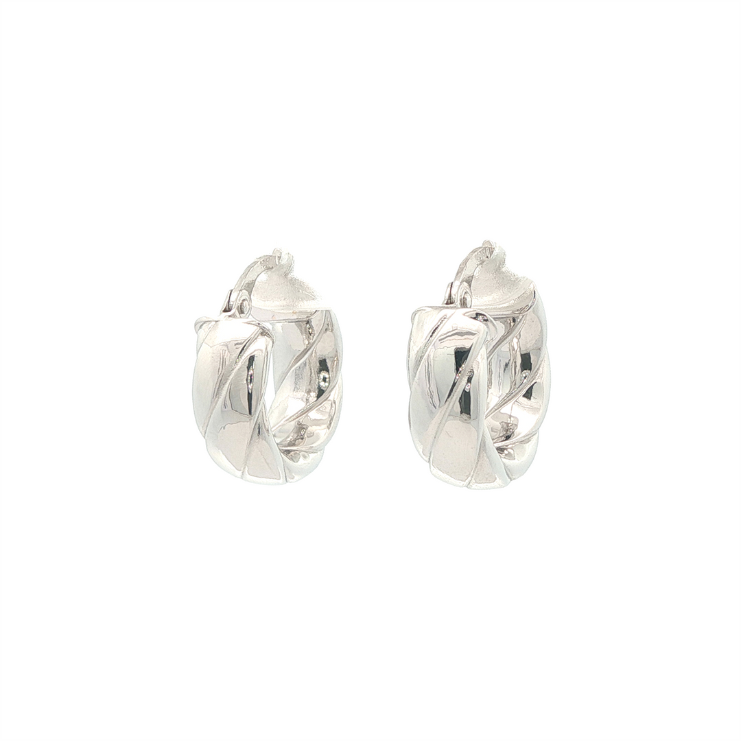 10K White Gold Fancy Hoops