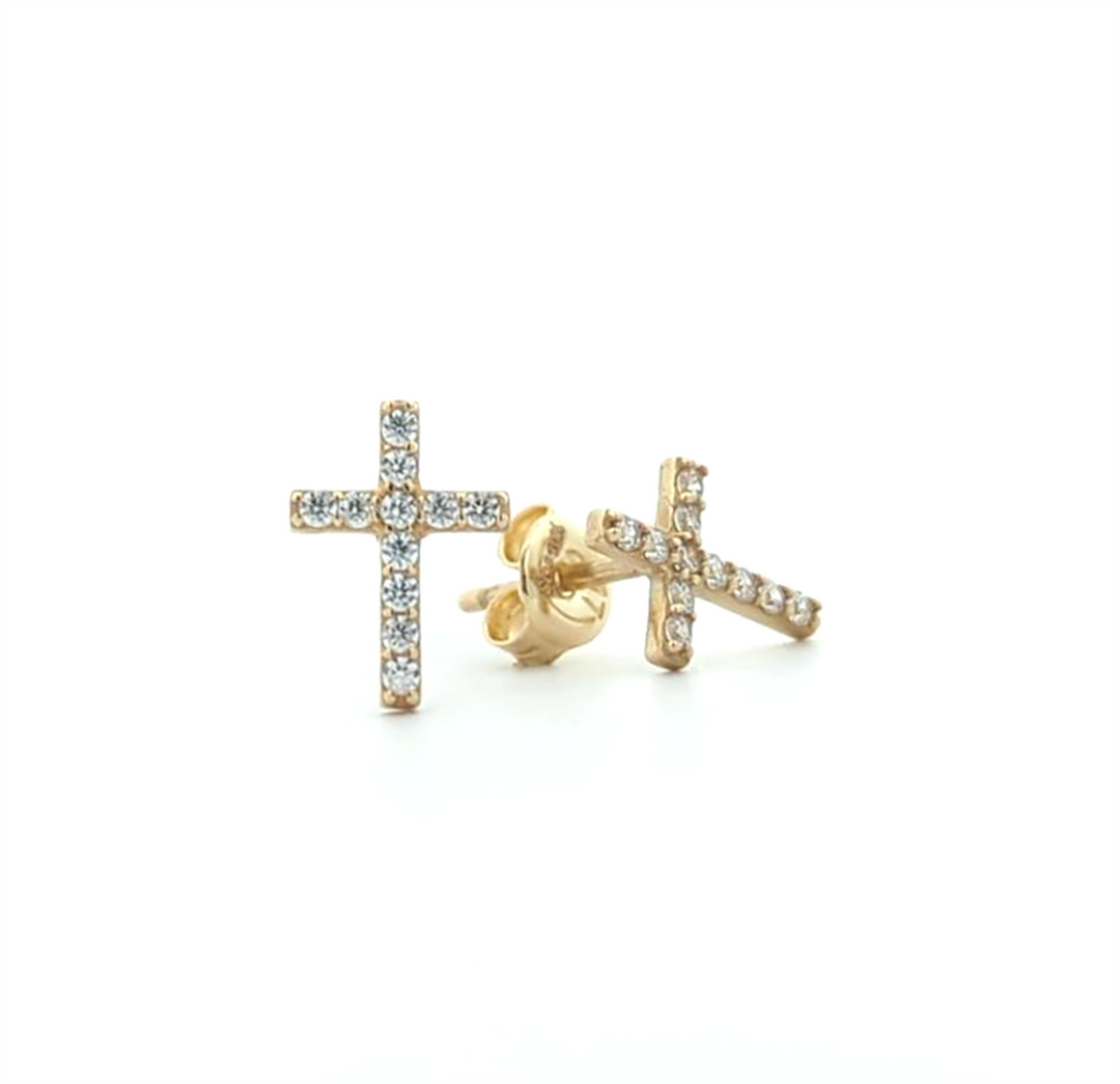 10KT Yellow Gold CZ Small Cross Stud Earrings