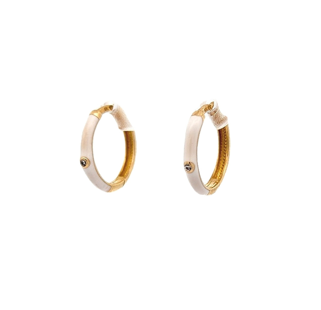 10KT Yellow Gold White Enamel and CZ 15mm Huggie Earrings