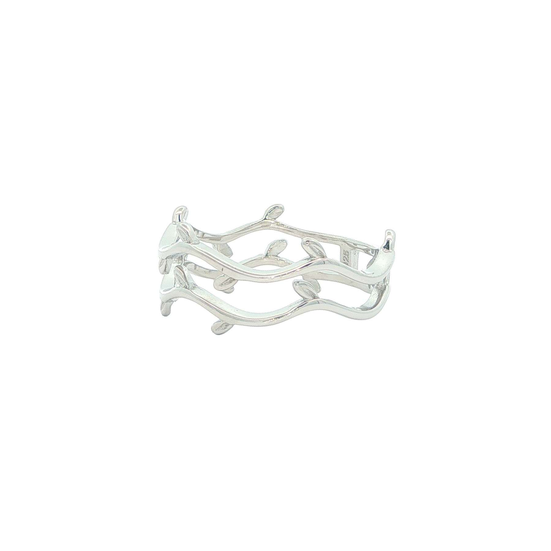 Sterling Silver with Rhodium Leaf Band (8mm width)