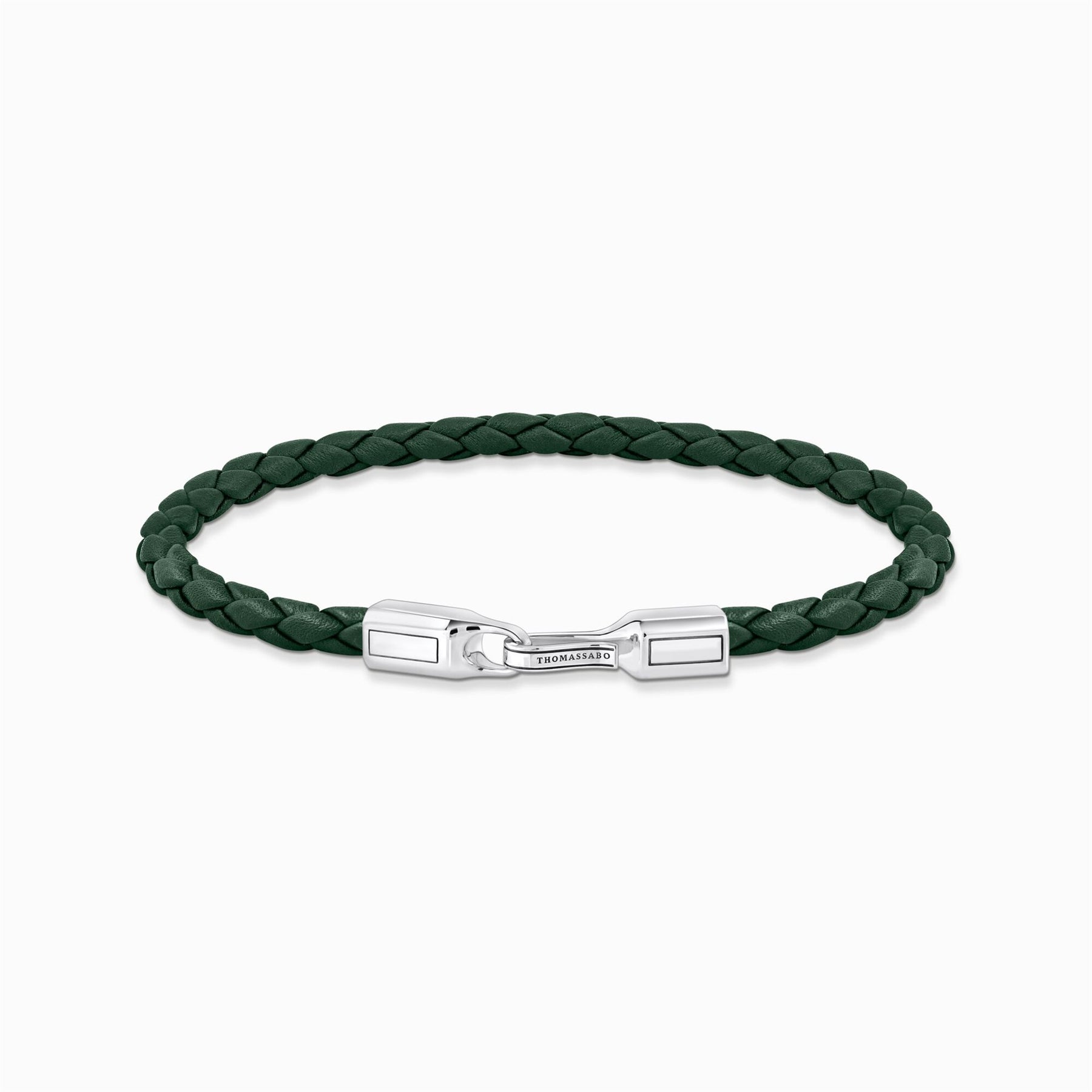 This basic bracelet is made of braided, green leather and comes with a clasp that consists of recycled, blackened silver. The latter is decorated with fine engraved lines and can be closed easily. This urban leather bracelet is a slim unisex design with a diameter of 4 mm.