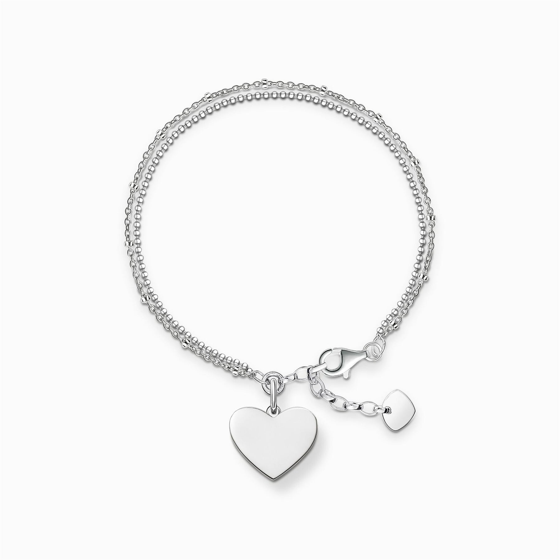 A stylish declaration of love: the feminine engravable double bracelet with its heart pendant conveys delicate love through the playfulness of this item of jewellery in a sophisticated manner.
