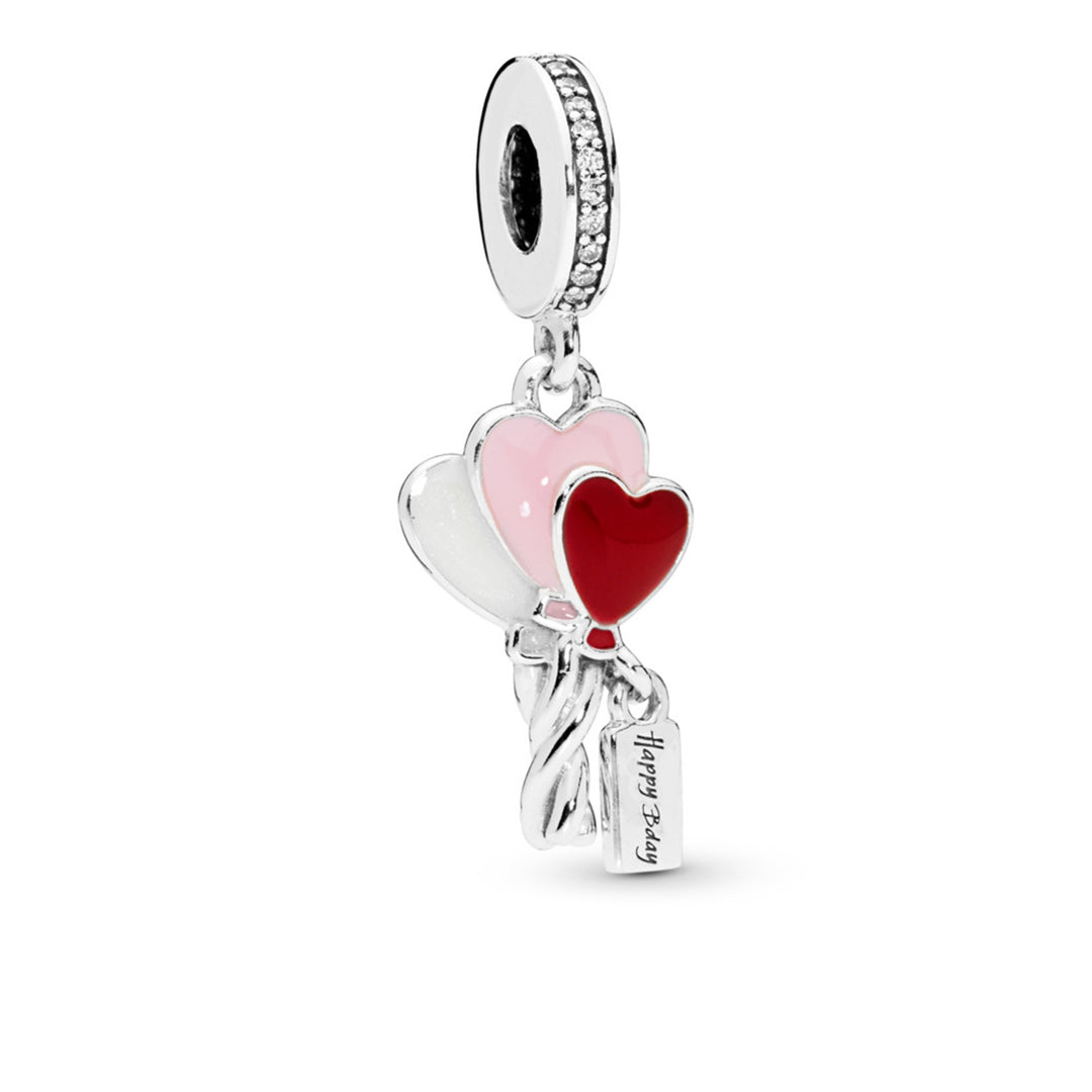 Balloons silver dangle with clear CZ, shimmering silver, pink and red enamel