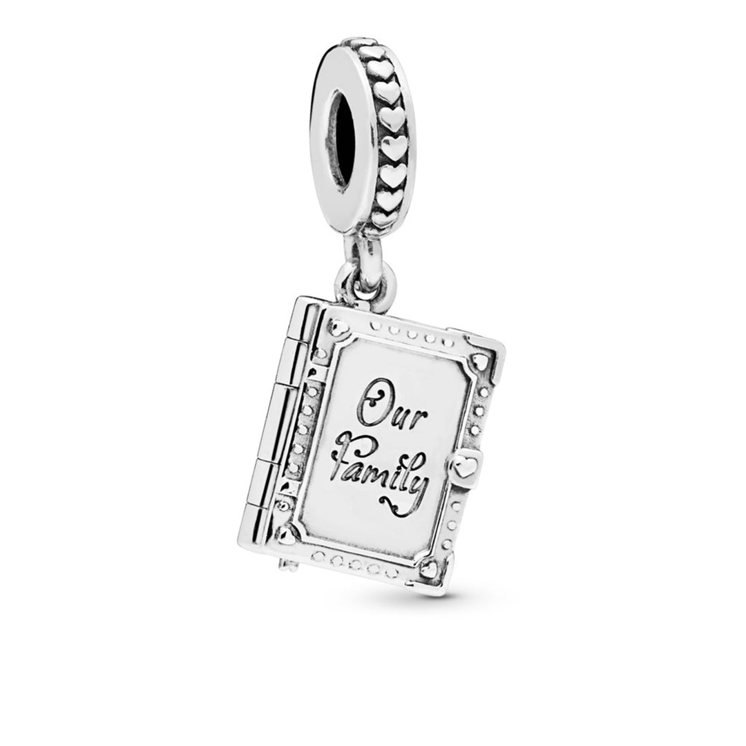 Family book openable silver dangle