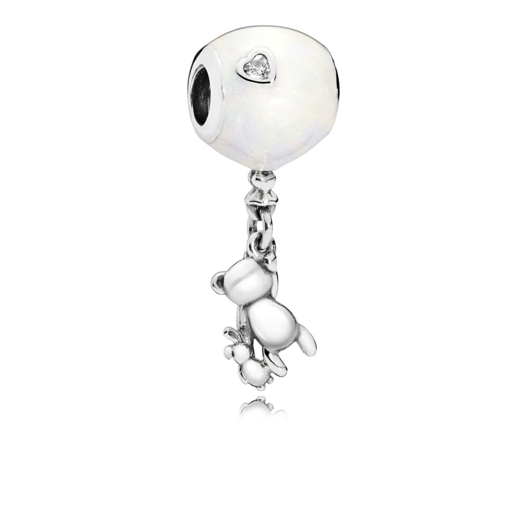 Balloon, teddy and rabbit silver charm with silver enamel and clear CZ