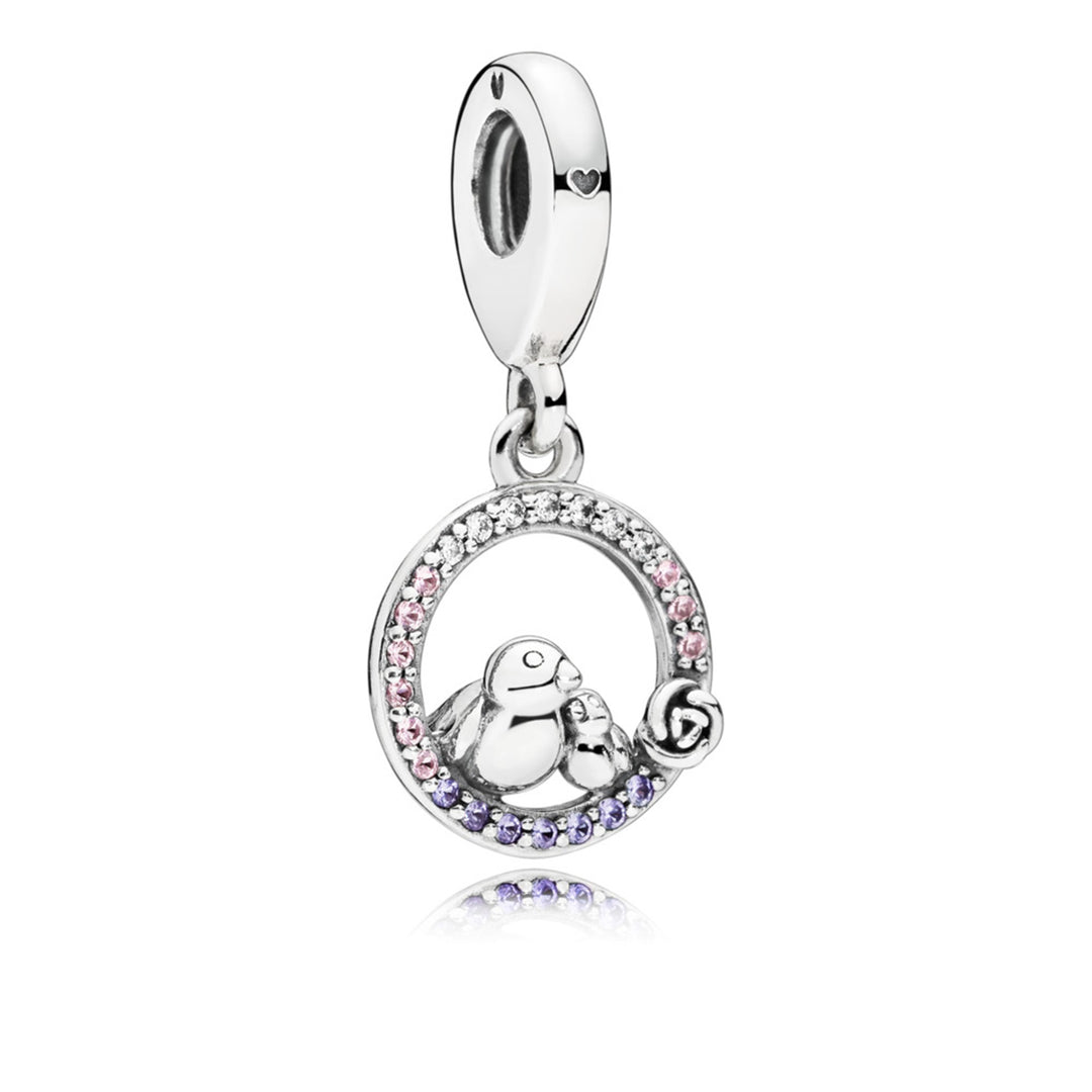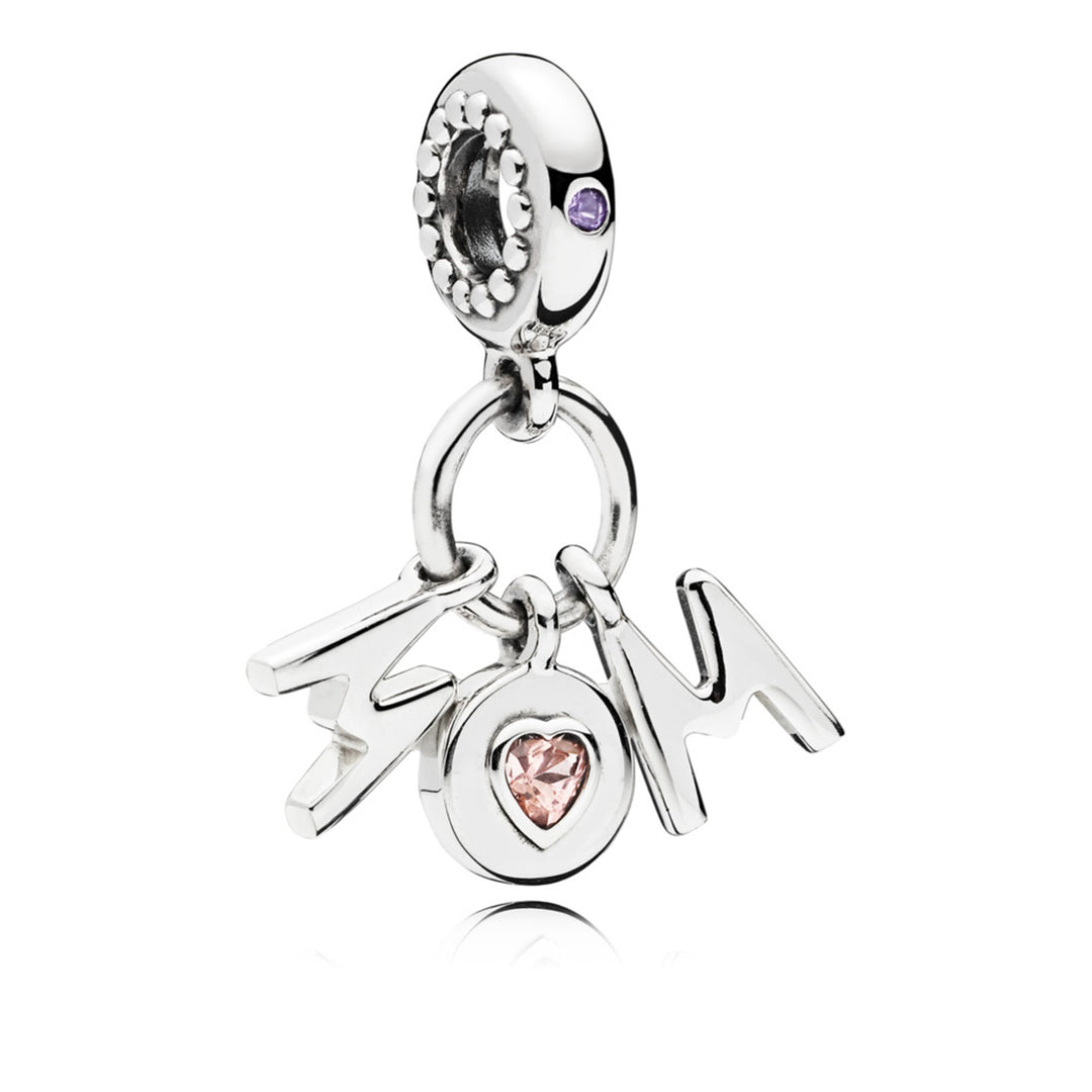 Perfect Mom, Pink & Lilac Crystals Mum silver dangle with soft pink crystal and lilac crystal
