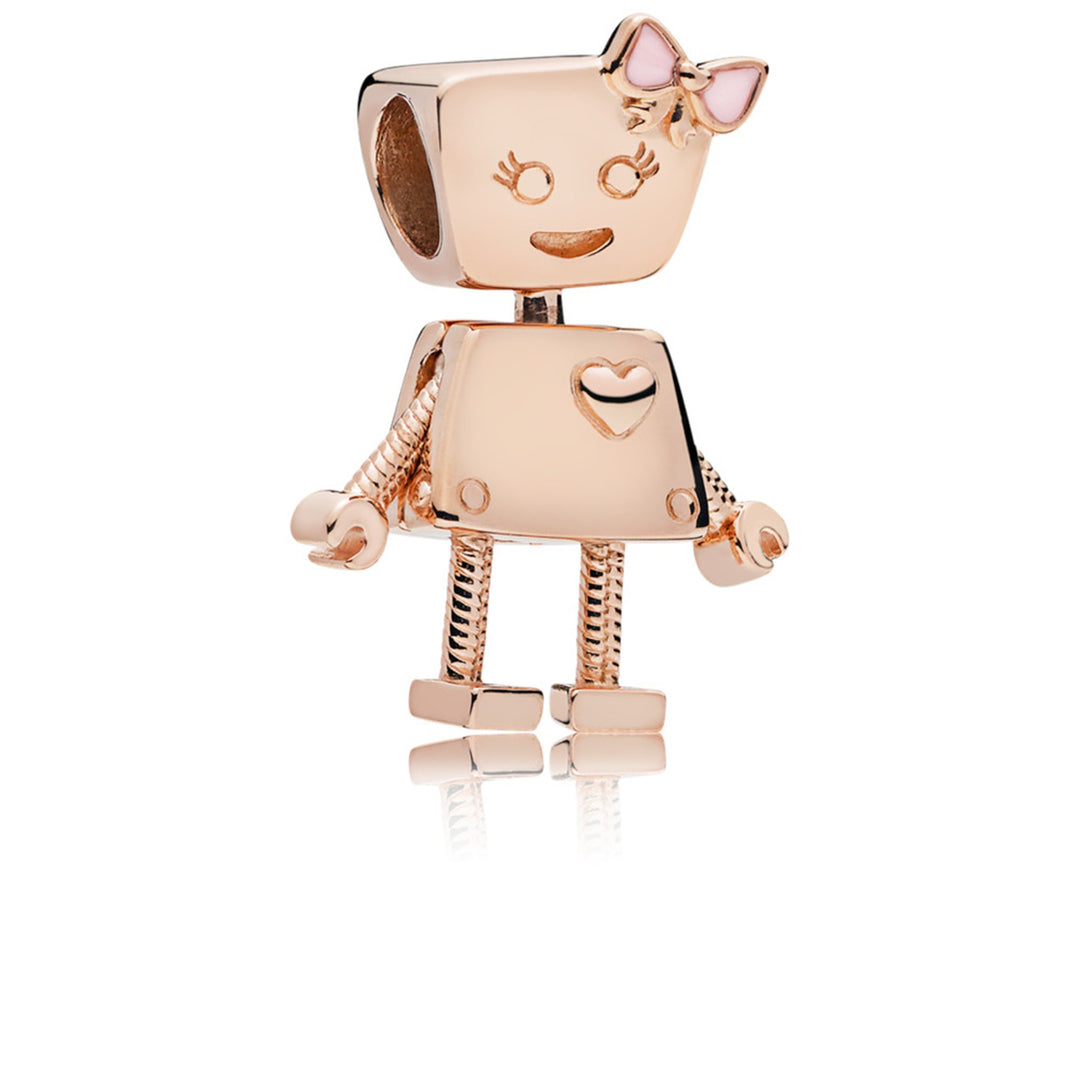 Girl robot charm in Rose with transparent pale pink enamel