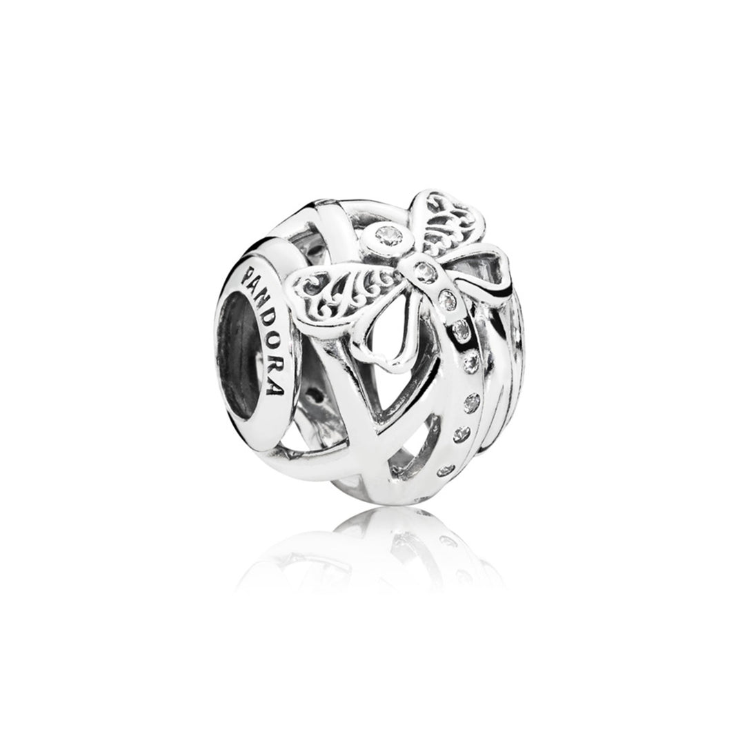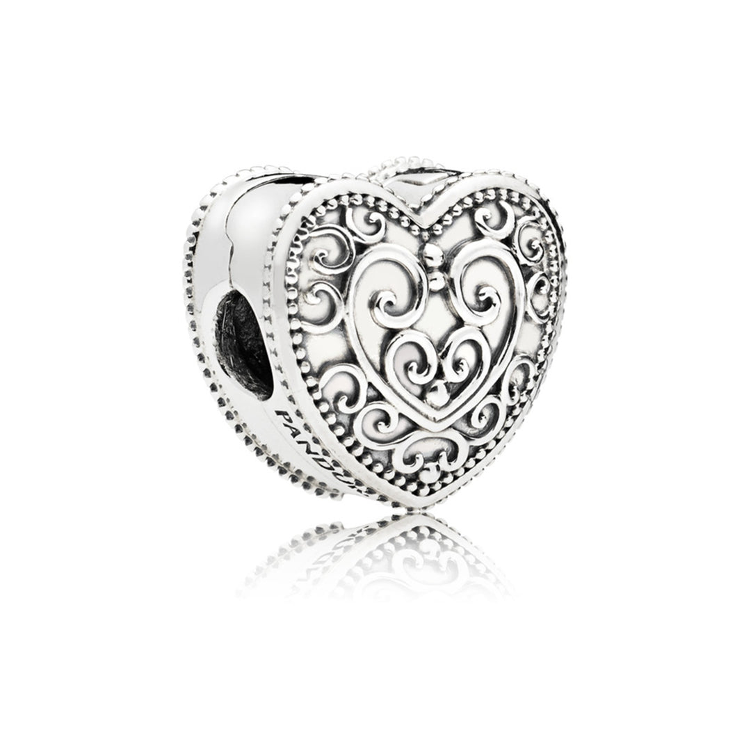 Heart clip in sterling silver with 28 bead-set clear CZ and silicone grip