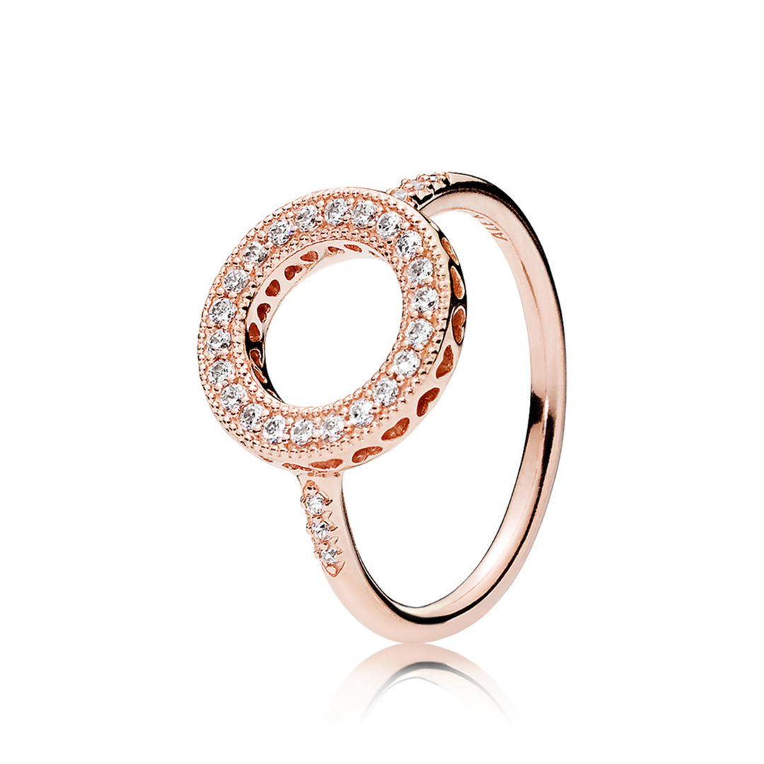 Heart ring in PANDORA Rose with 36 micro bead-set clear CZ
