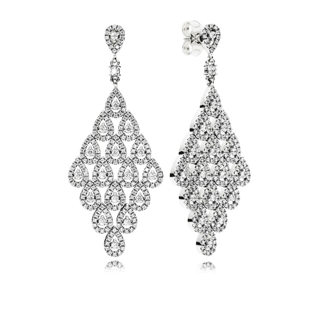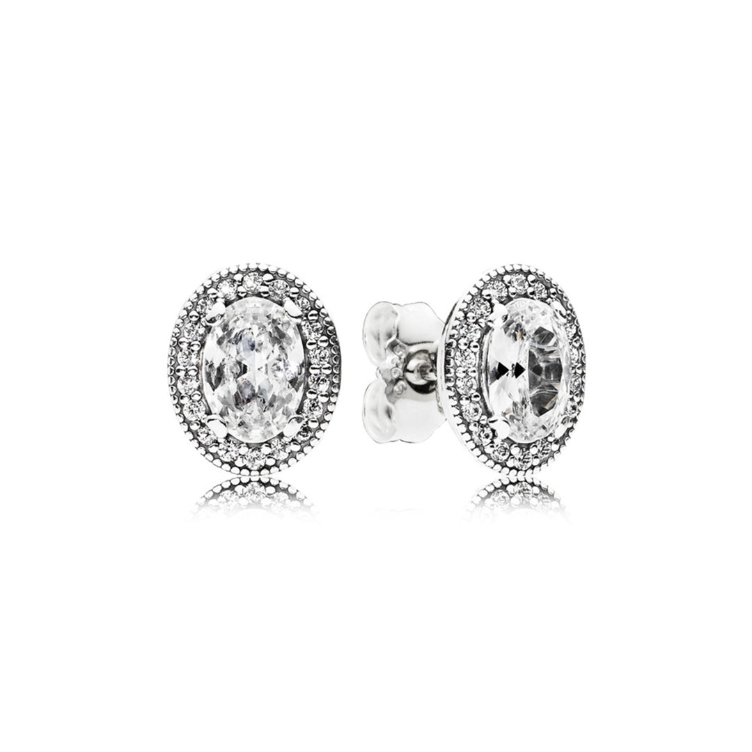PANDORA logo stud earrings in SS with 14k gold and clear CZ