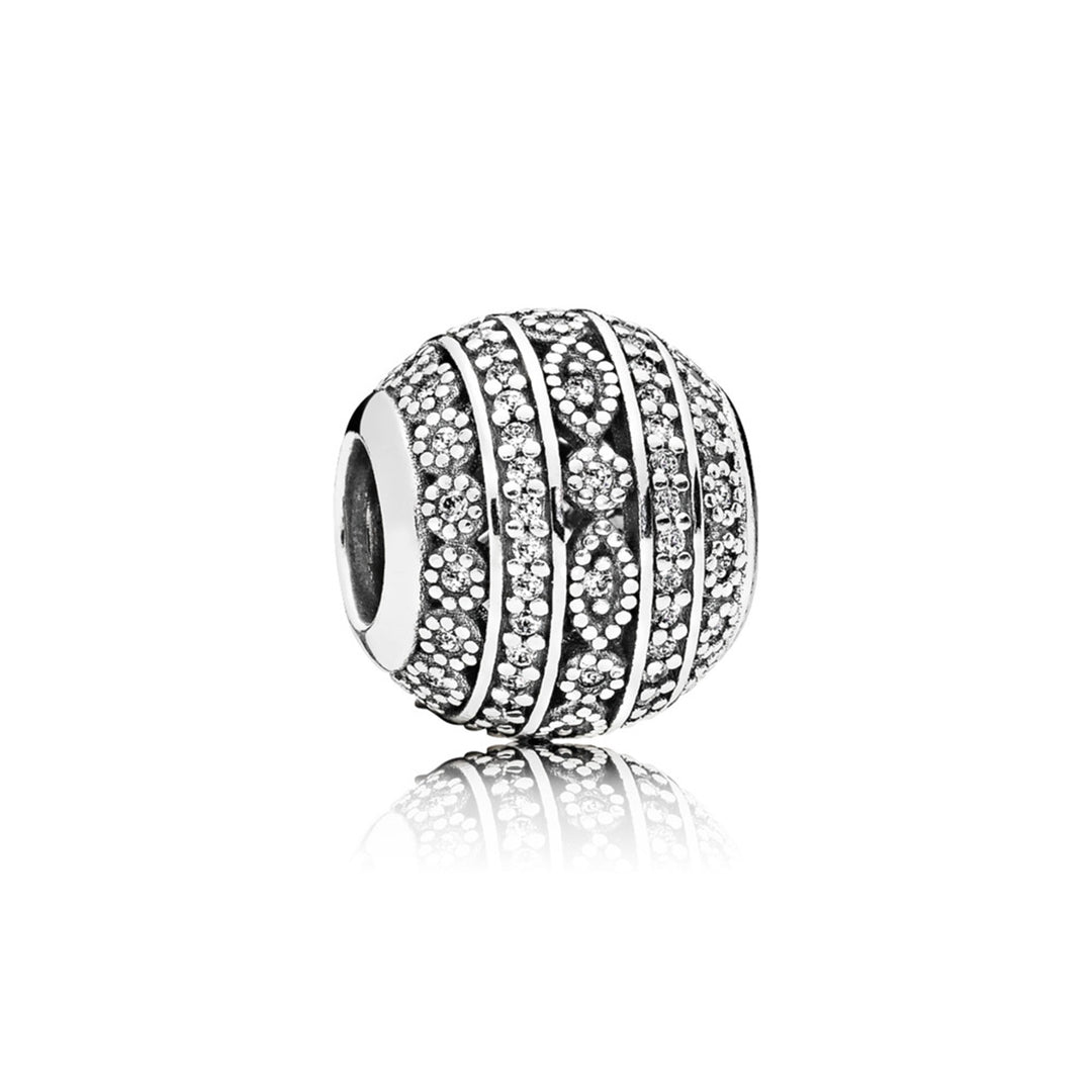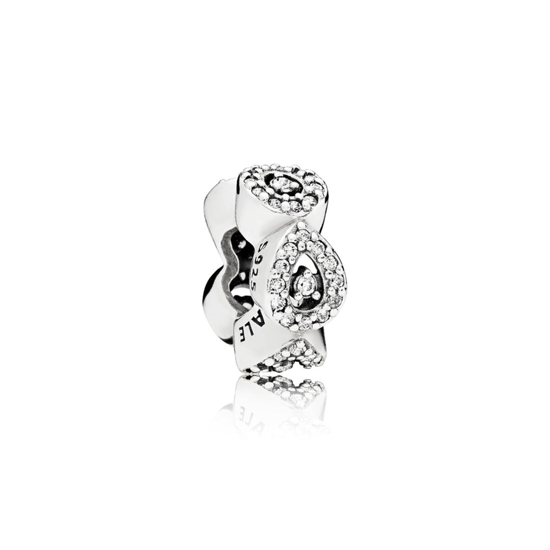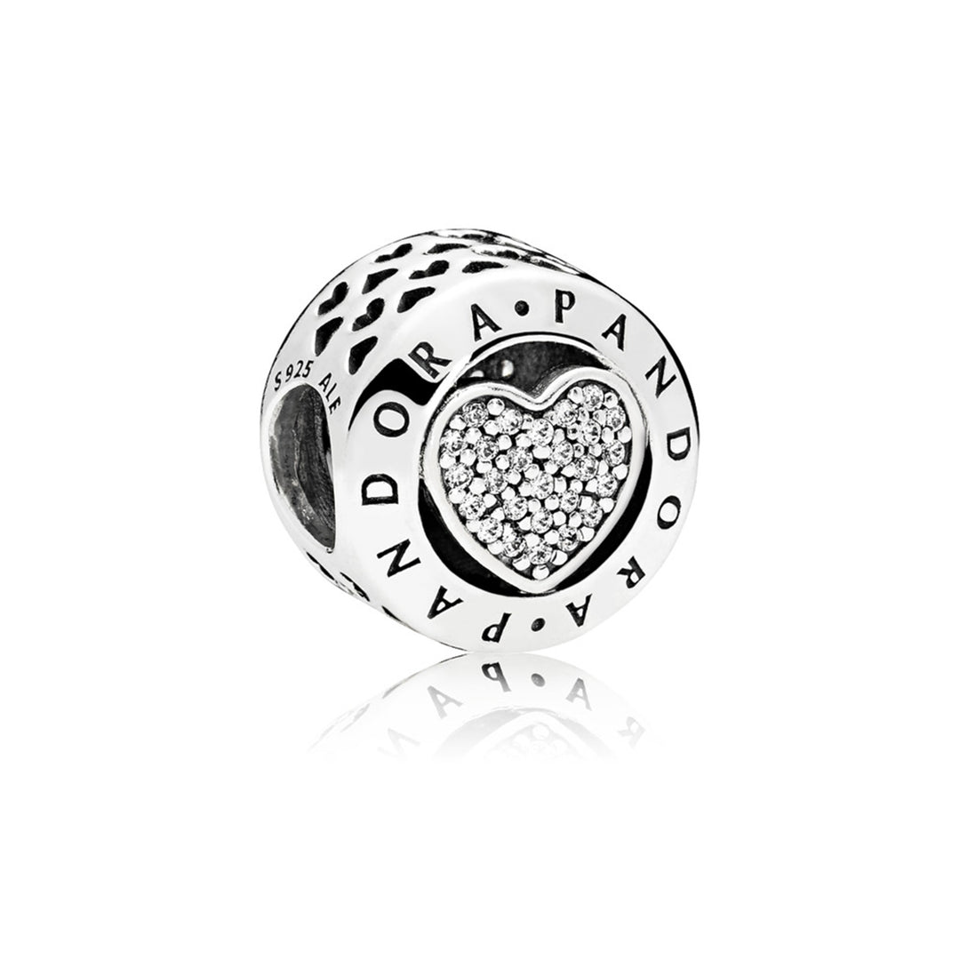 Heart dangle in sterling silver with engraving, shimmering pink enamel and clear CZ