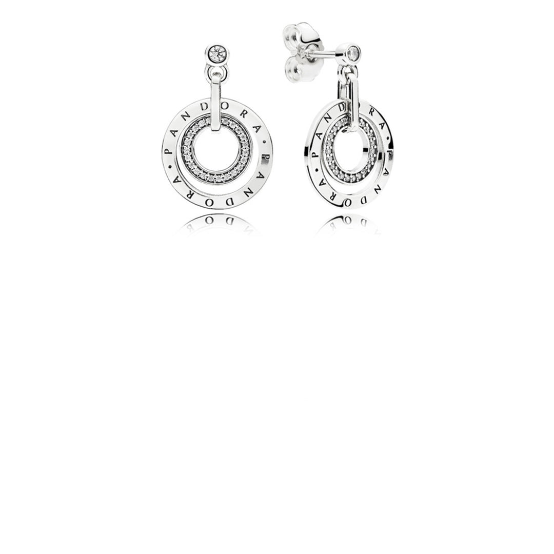 PANDORA logo earrings in sterling silver with clear CZ