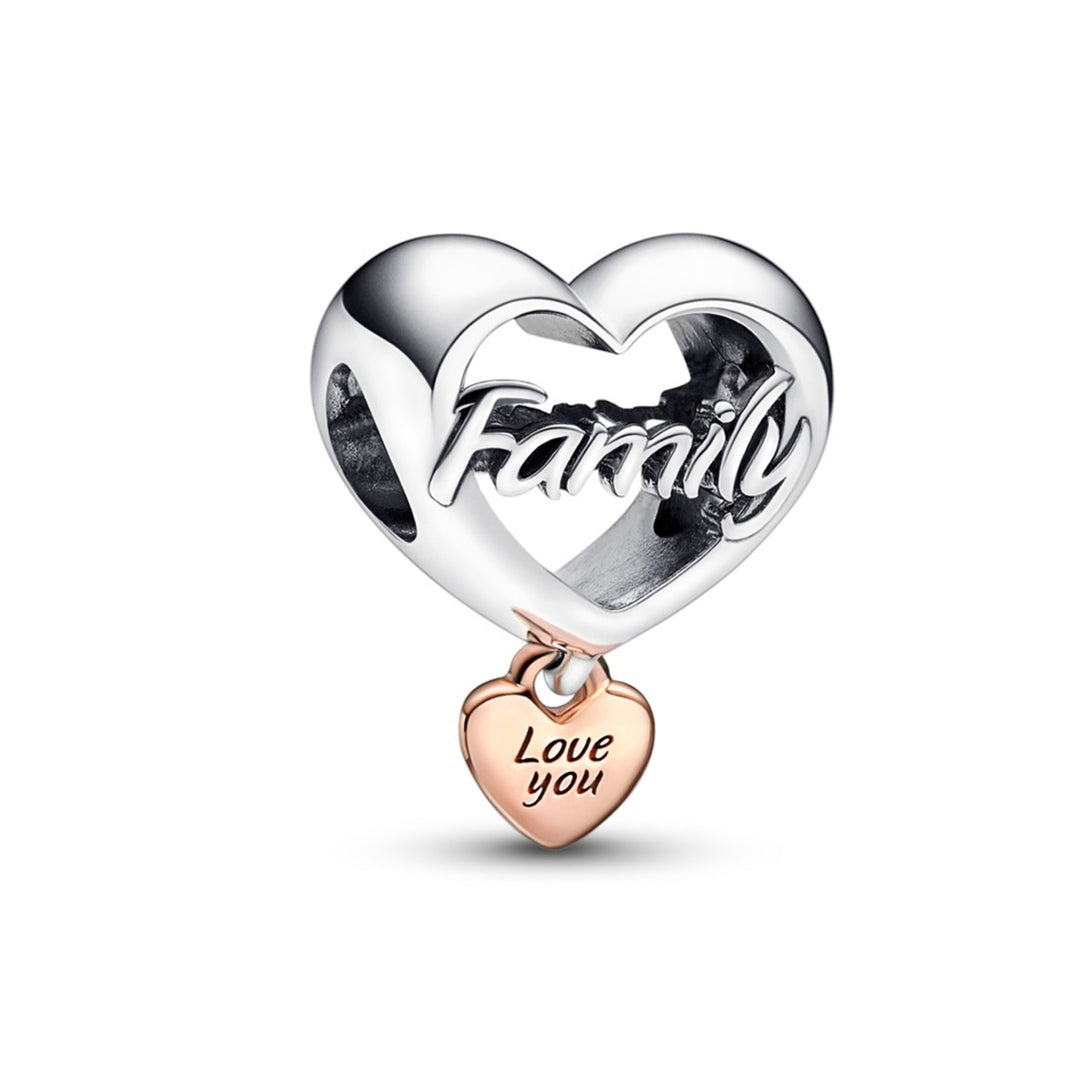 Family heart sterling silver and 14k rose gold