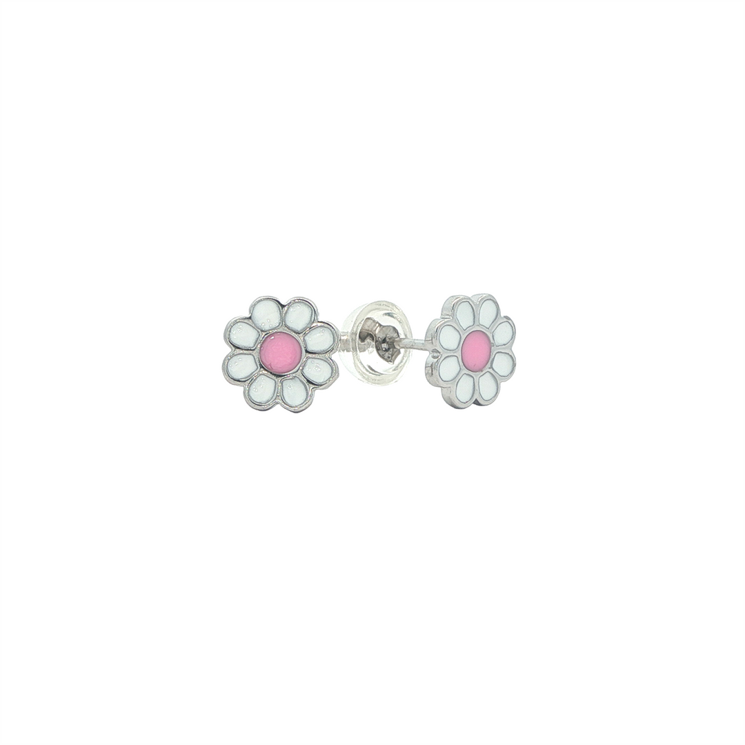 Sterling Silver Enamel Pink Daisy Stud Children's Earrings