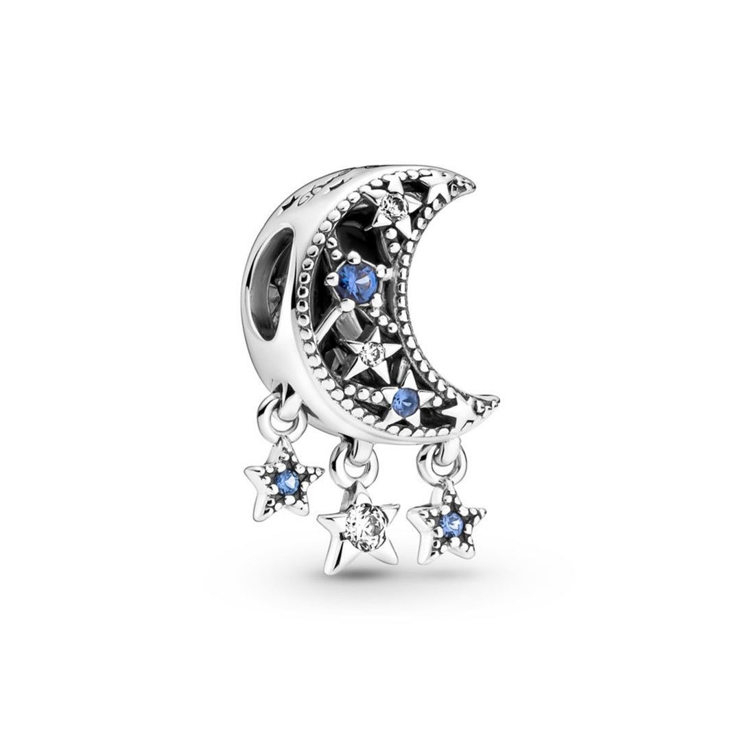 Moon and star sterling silver charm