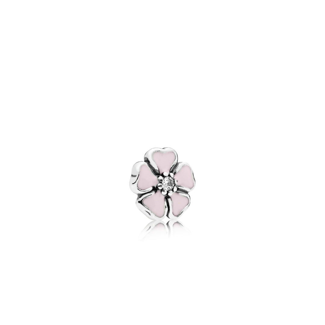 Cherry blossom silver petite element with clear cubic zirconia and pink enamel