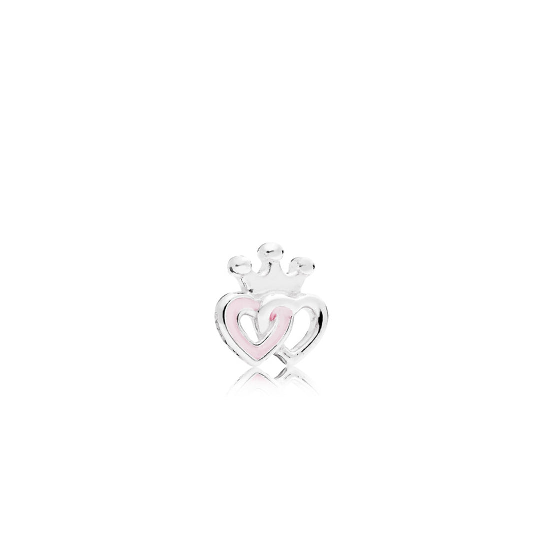 Interlocked crowned hearts silver petite element with pink enamel