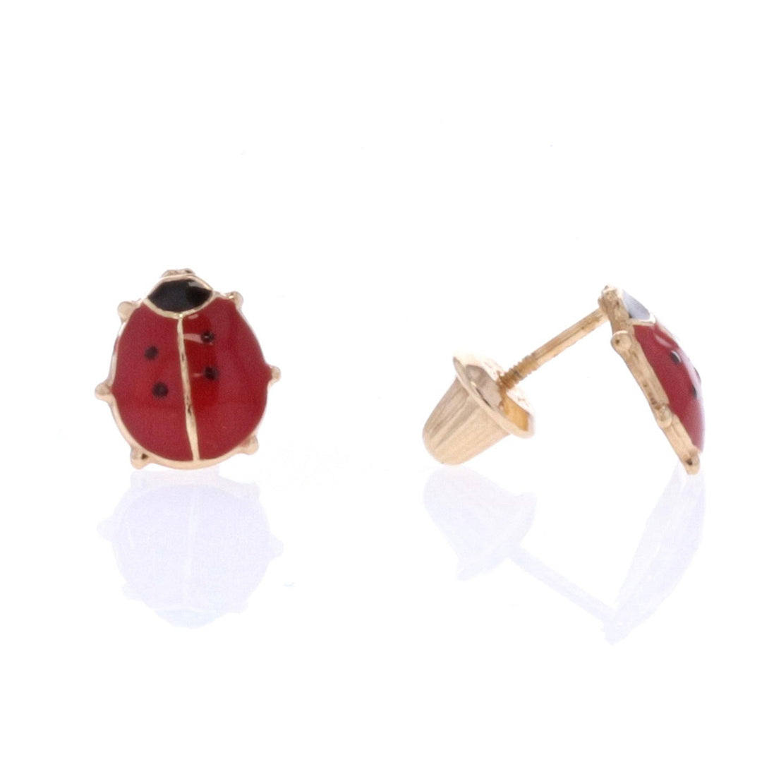 14KT Gold Filled Red Enamel Ladybug Stud Earrings