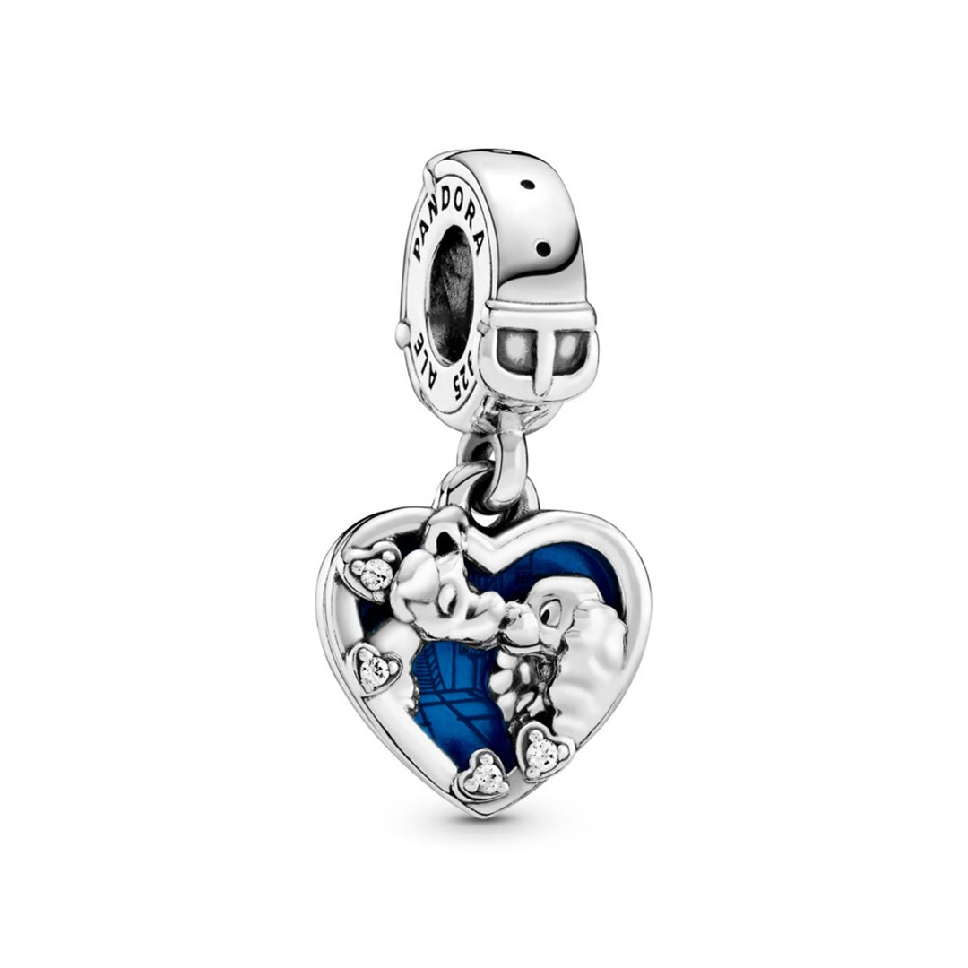 Disney Lady and the Tramp sterling silver dangle with clear CZ and shimmering blue enamel
