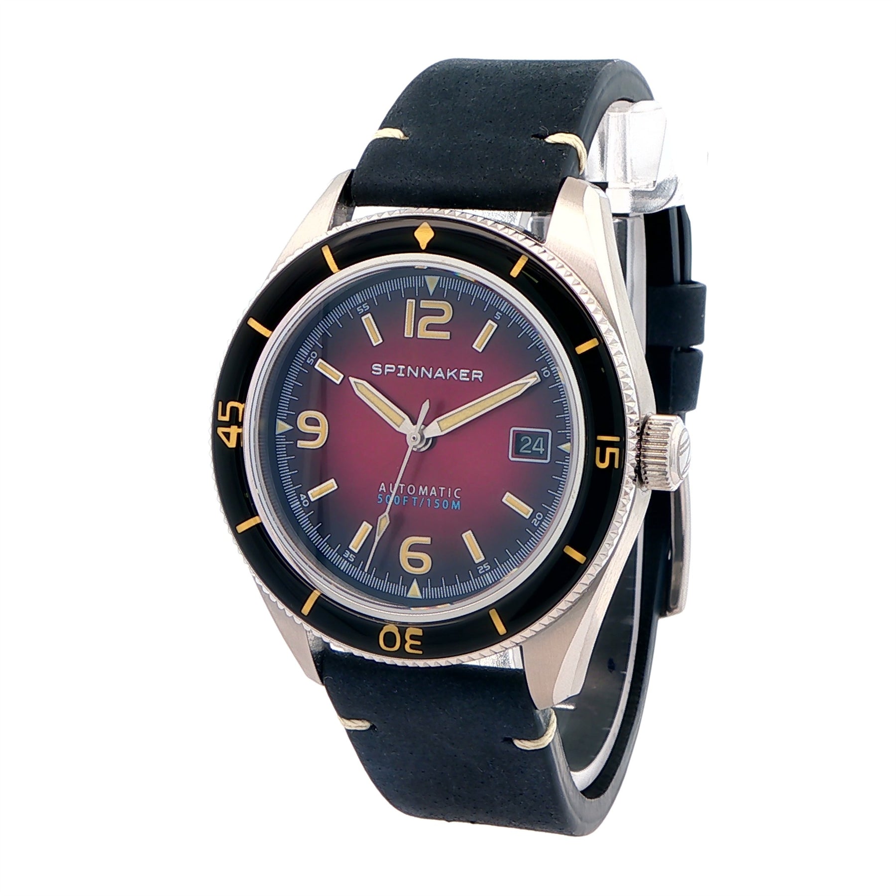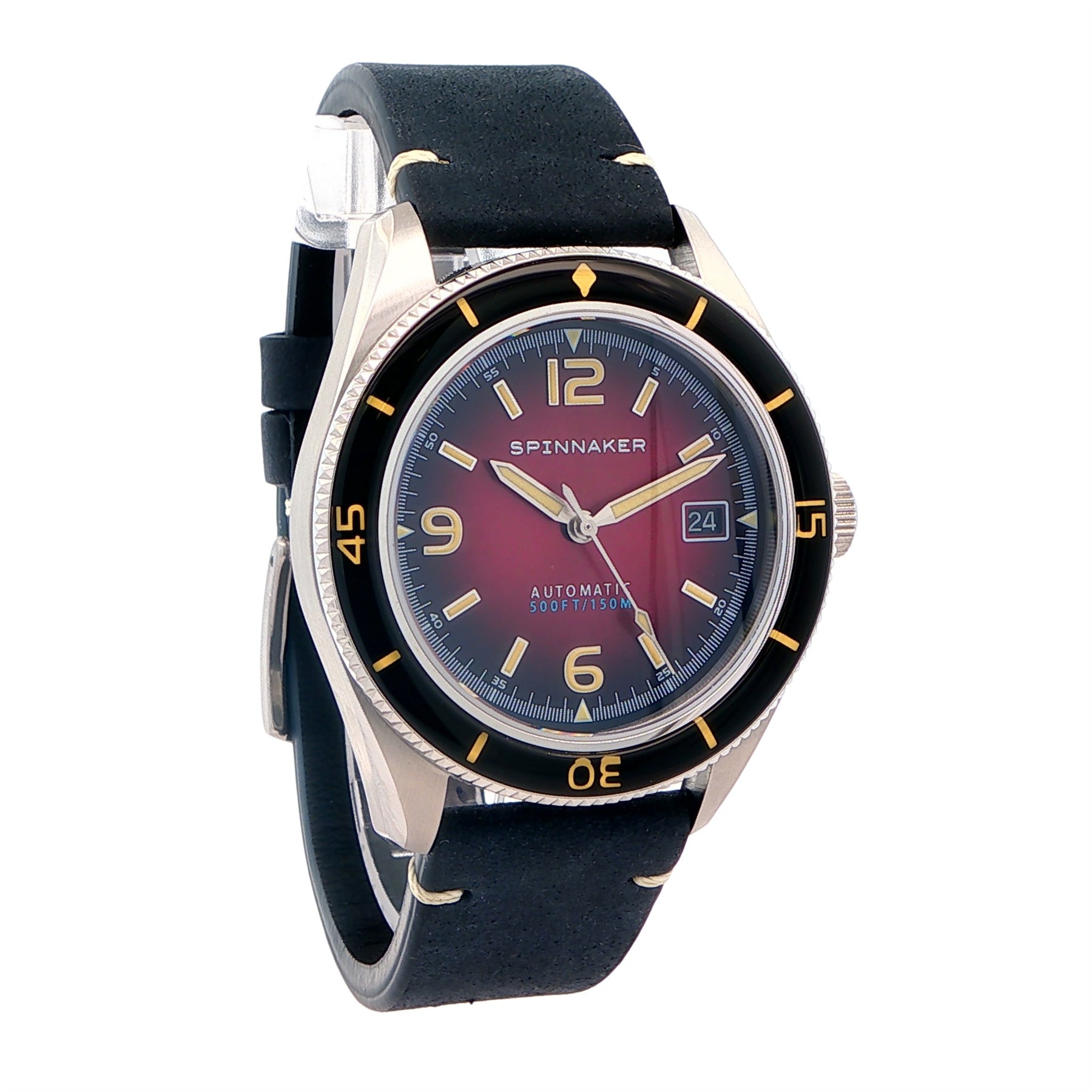 This Spinnaker Fleuss Automatic blends vintage dive watch aesthetics with modern performance. Featuring a bold 43mm stainless steel case, a sunburst oxblood red dial with luminous hands and indices, and a domed sapphire-coated lens, this timepiece offers both style and durability. Powered by a reliable automatic movement, it boasts 150m water resistance, making it a versatile companion for everyday wear and aquatic adventures. The unidirectional bezel and vintage-inspired leather strap complete the look, ensuring a distinctive presence on the wrist. A perfect blend of heritage design and contemporary engineering at an exceptional value.