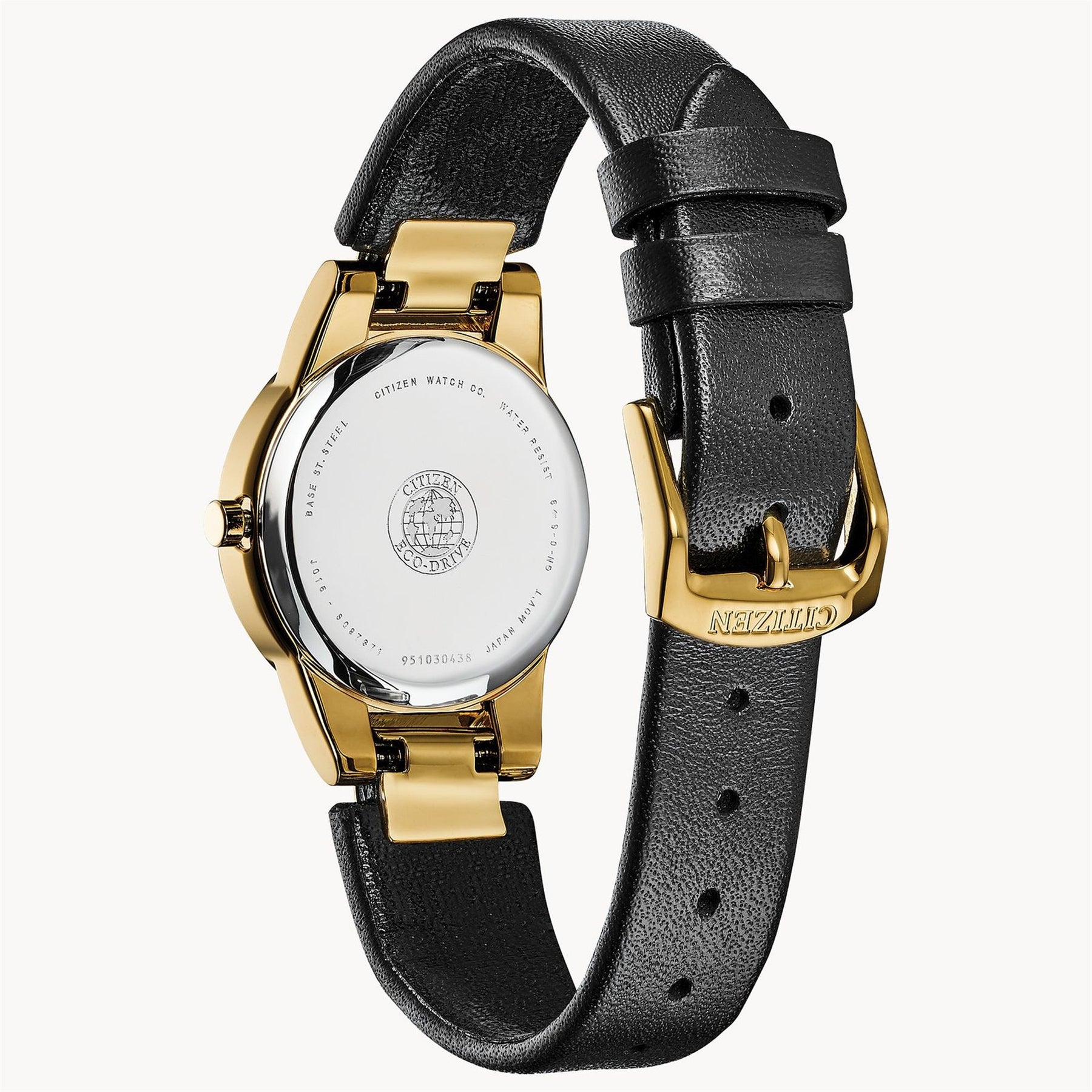 Axiom's refined yet sleek design offers a day-to-night fashion option for the avid trendsetter. Featured in a gold-tone stainless steel case with a black leather strap, a black dial, and the intriguing feature of edge-to-edge glass. Featuring our Eco-Drive technology – powered by light, any light. Never needs a battery.