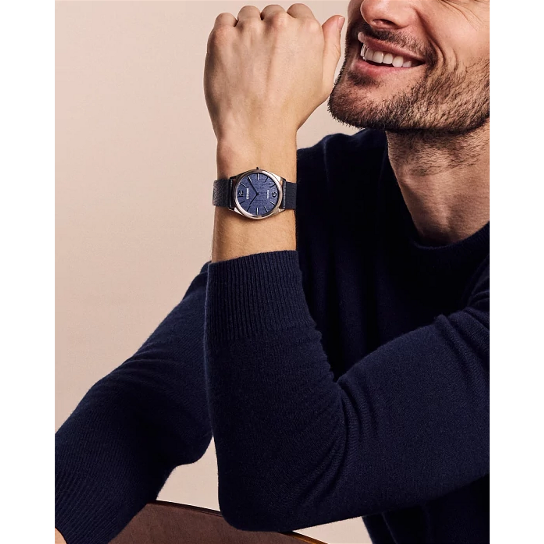 Classic lines and a simple silhouette define the newest addition to the Classic collection. This all-purpose dress watch features a versatile silver-tone stainless steel 38.4mm case, a two-hand blue dial featuring an entrancing metallic powder aesthetic with silver-tone hands and markers, and is secured to the wrist via a grained blue leather strap with buckle closure. Sustainably powered by any light with Eco-Drive technology and never needs a battery. Water resistant to 50 metres. Calibre G872.