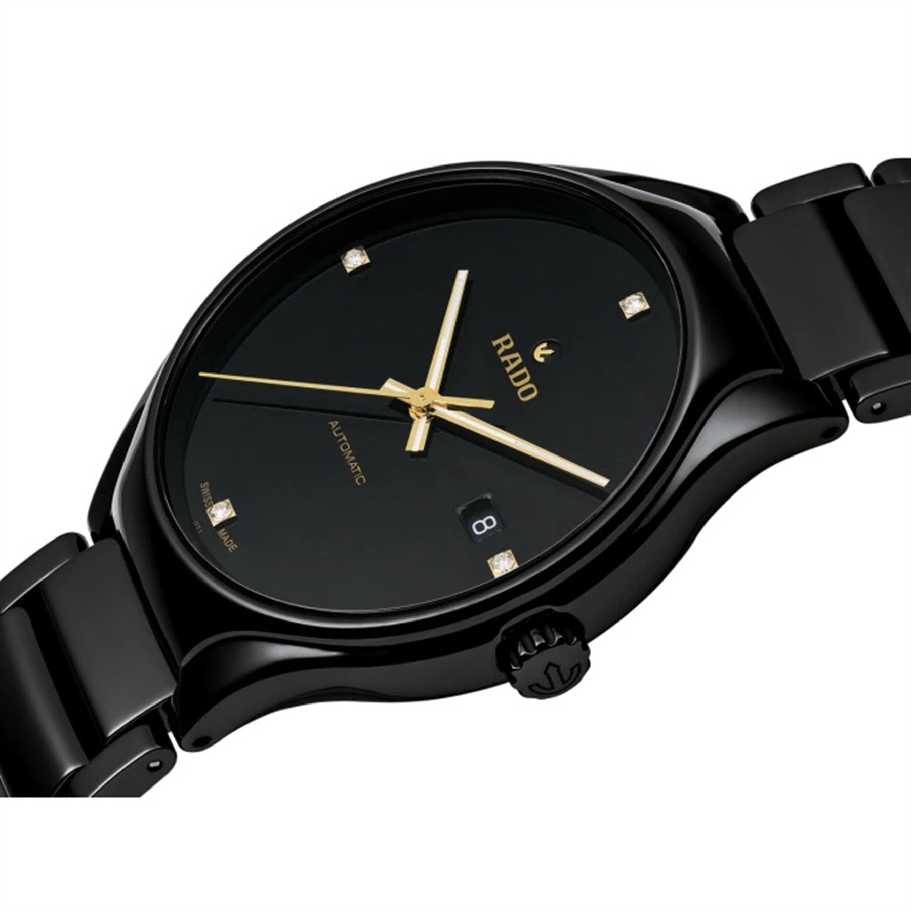 Reimagined for modern wearers, redesigned, but reliably and distinctively Rado, the True is a perfect, polished package with a quality Swiss automatic movement and the added allure of diamonds. It will keep its shine for years to come while also offering lightness and wearer comfort. This is True.