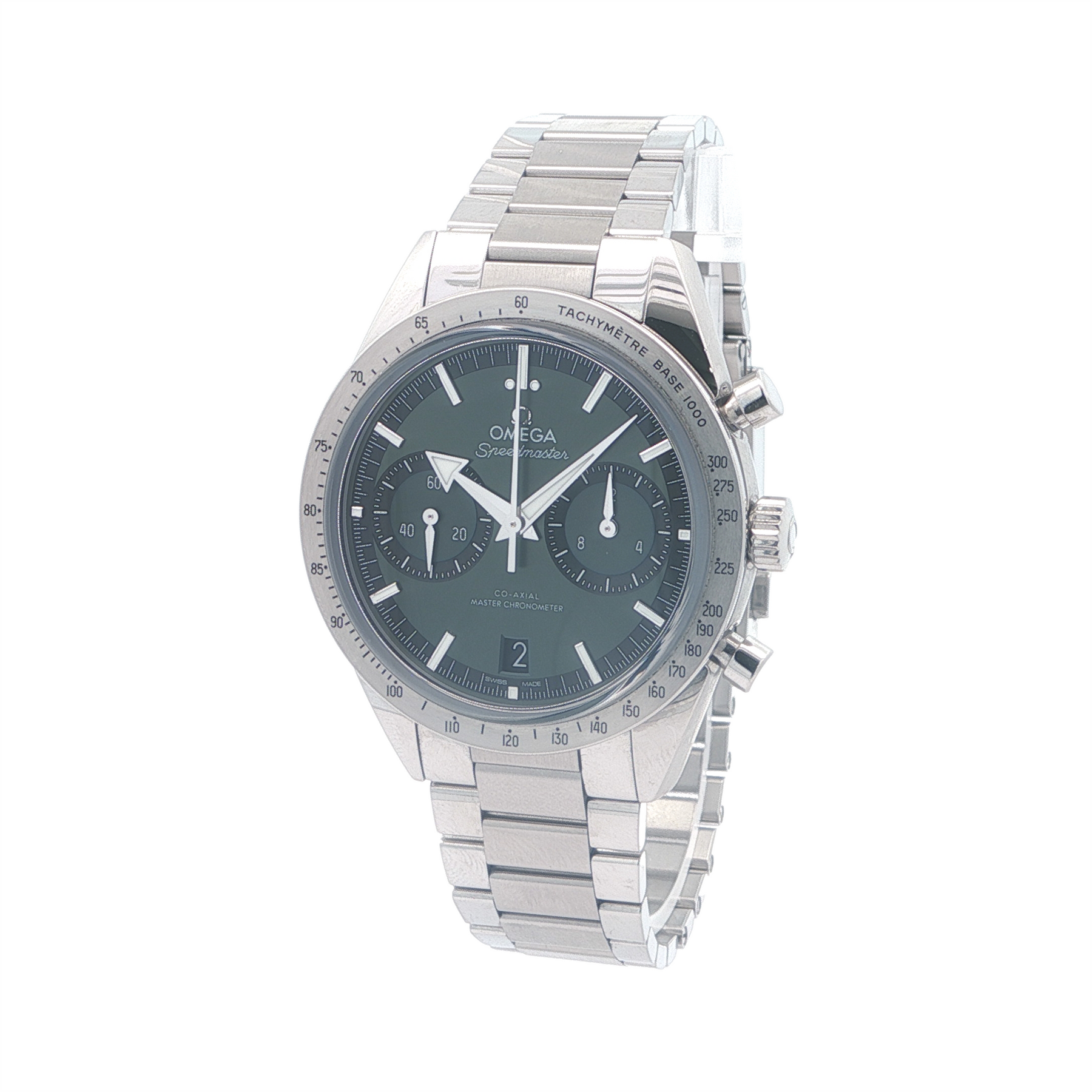This Omega Speedmaster ’57 blends vintage inspiration with contemporary refinement. Its rich green dial, framed by a brushed stainless steel case and bracelet, offers a clean, balanced aesthetic that feels both classic and modern. Driven by Omega’s hand-wound Co-Axial Master Chronometer chronograph movement, it delivers exceptional accuracy, magnetic resistance, and a satisfying mechanical connection to the brand’s heritage. The result is a chronograph that wears with understated confidence—sporty in capability, yet polished enough for everyday sophistication.