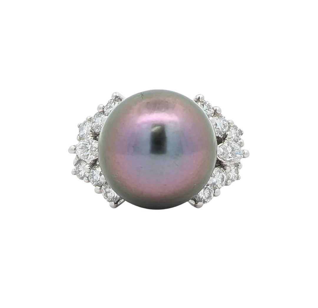 14KT White Gold Pearl and 0.45ctw Diamond Estate Ring