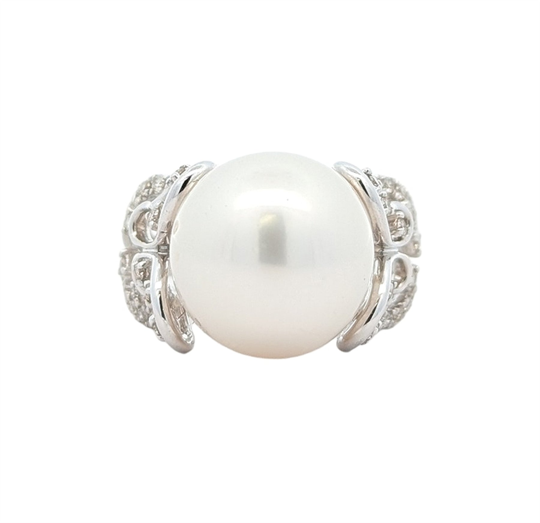14KT White Gold White South Sea Pearl and 0.40ctw Diamond Ring