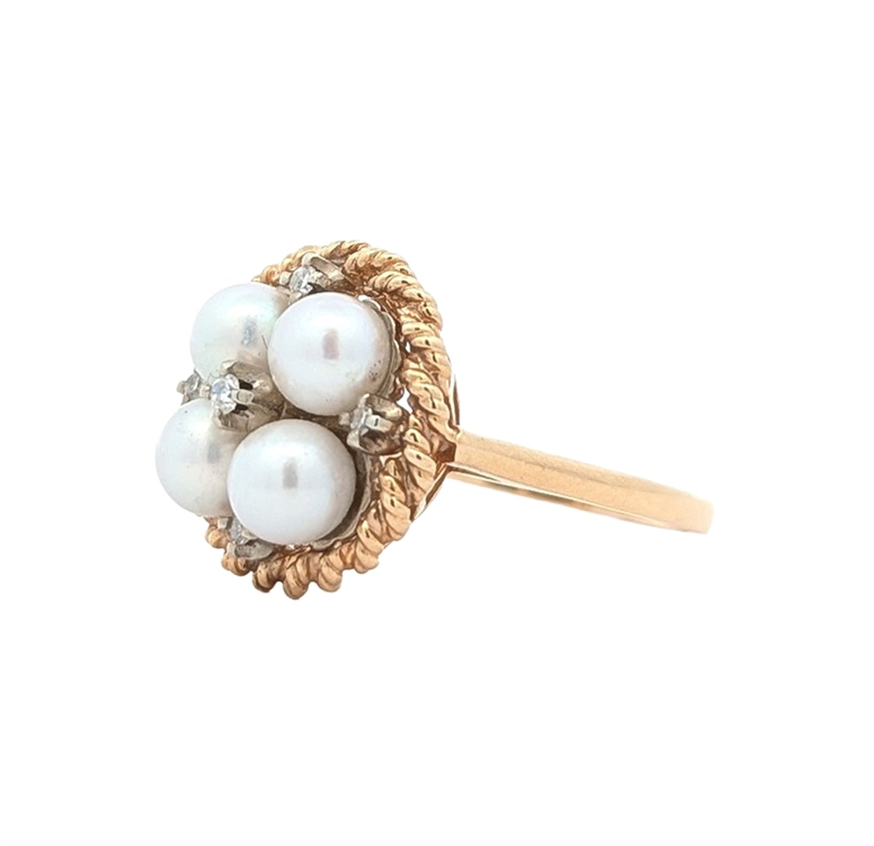 14KT Yellow Gold Pearl and Diamond Estate Ring