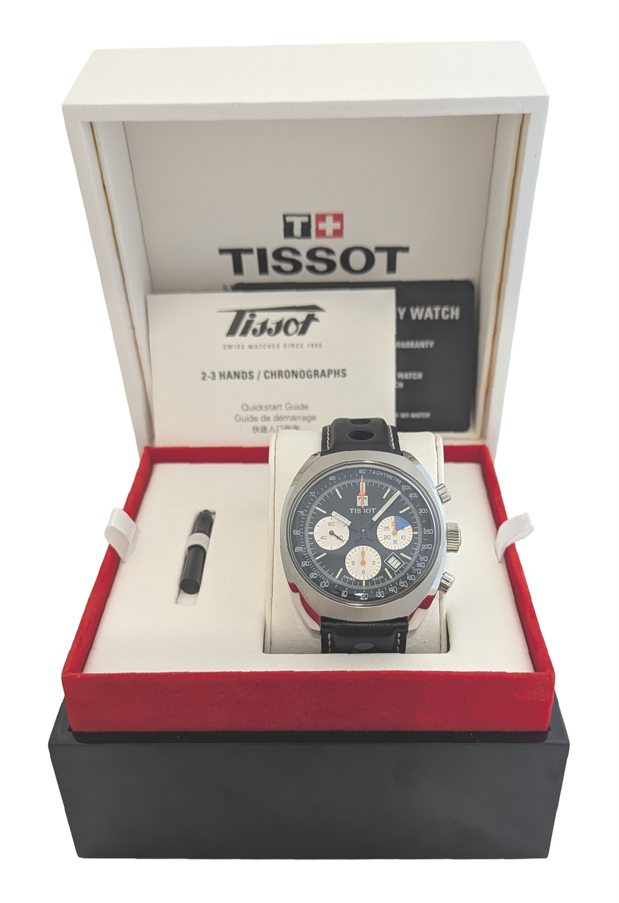 This Tissot Heritage 1973 celebrates a seminal moment in Tissot’s racing history with a faithful nod to the brand’s 1970s chronograph tradition. Inspired by Tissot’s original motorsport timekeepers, this model captures the spirit of vintage racing with its distinctive cushion-shaped case and bi-compax layout. The original 1973 design—favoured by drivers and enthusiasts alike for its legibility and bold aesthetic—serves as the blueprint, while modern craftsmanship ensures precision and durability for today’s wearer. A tribute to Tissot’s heritage on track and road, the Heritage 1973 blends retro character with contemporary performance.