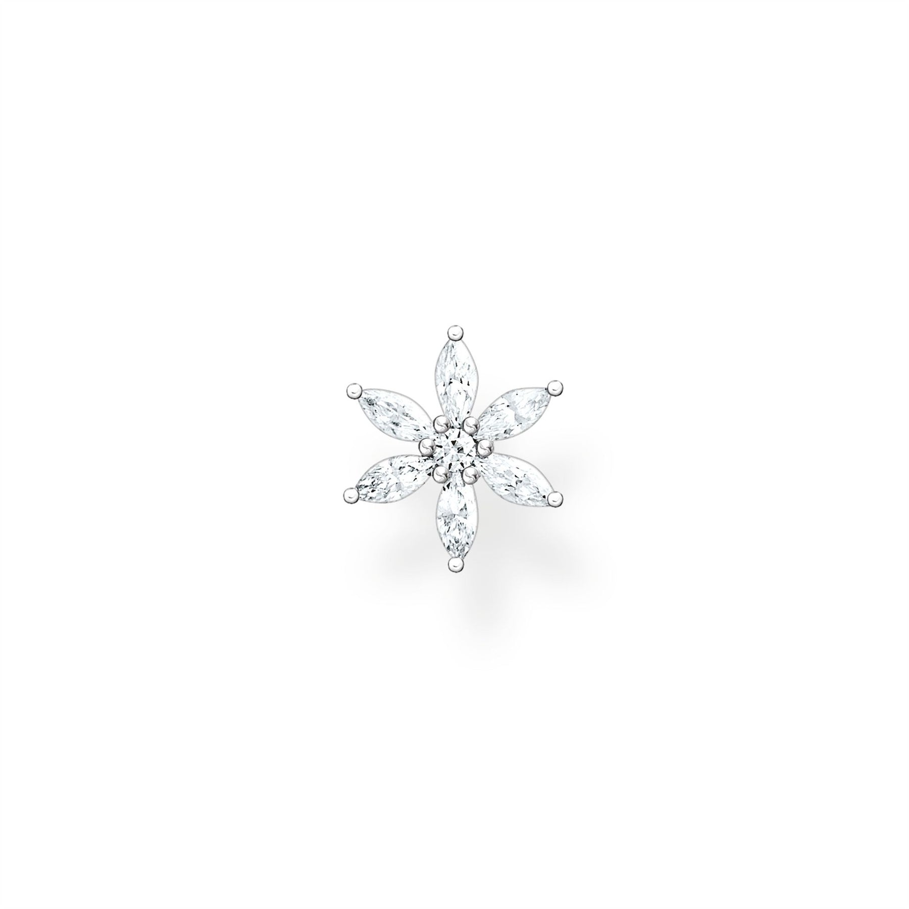 Happy Moments: The filigree flower single ear stud is decorated with white, sparkling gemstones. Whether worn alone or in combination with other ear jewellery in en-vogue ear-candy look – an eye-catcher for any style.