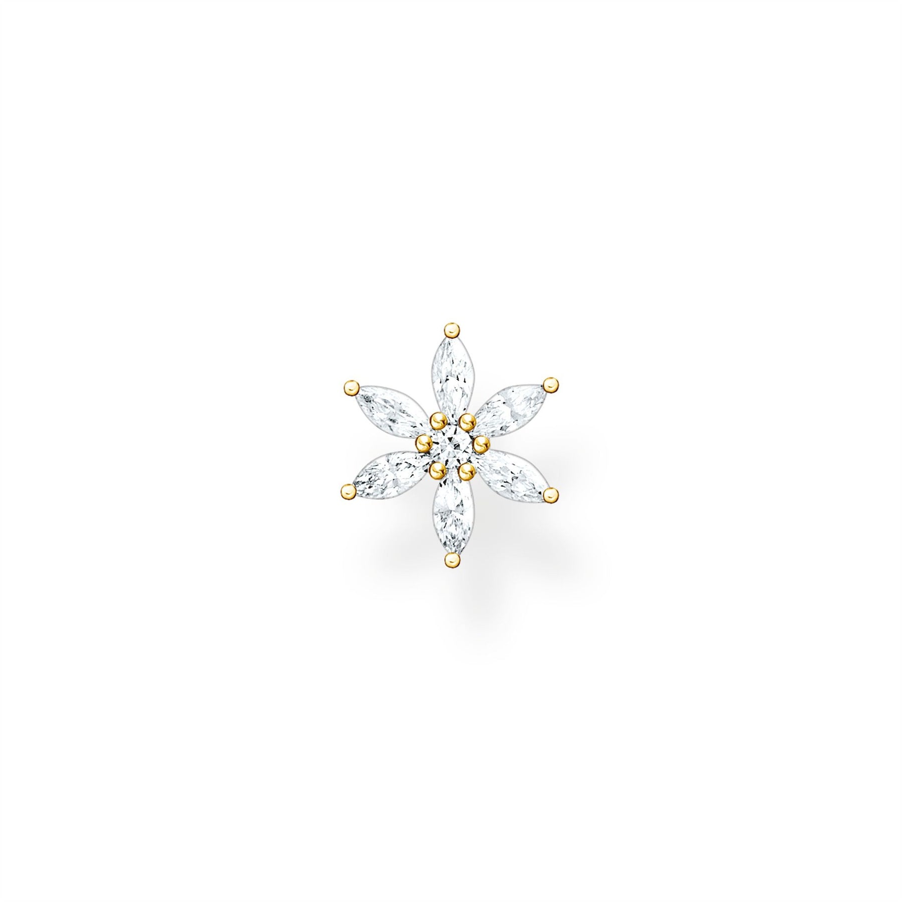 Single Ear Stud Flower White Stones Gold