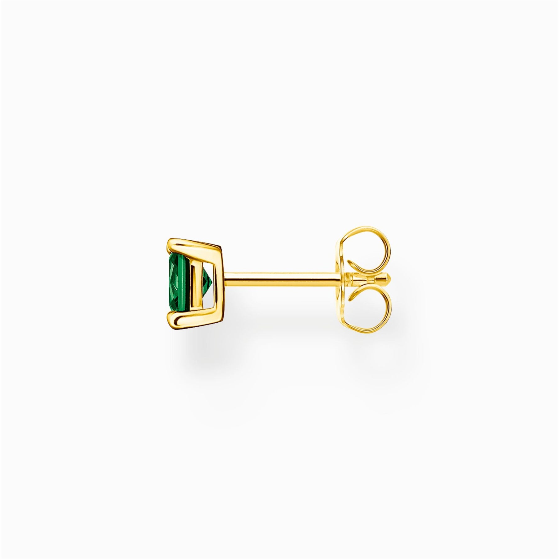 Thomas Sabo Sterling Silver Gold Plated Green Stone Single Stud Earring