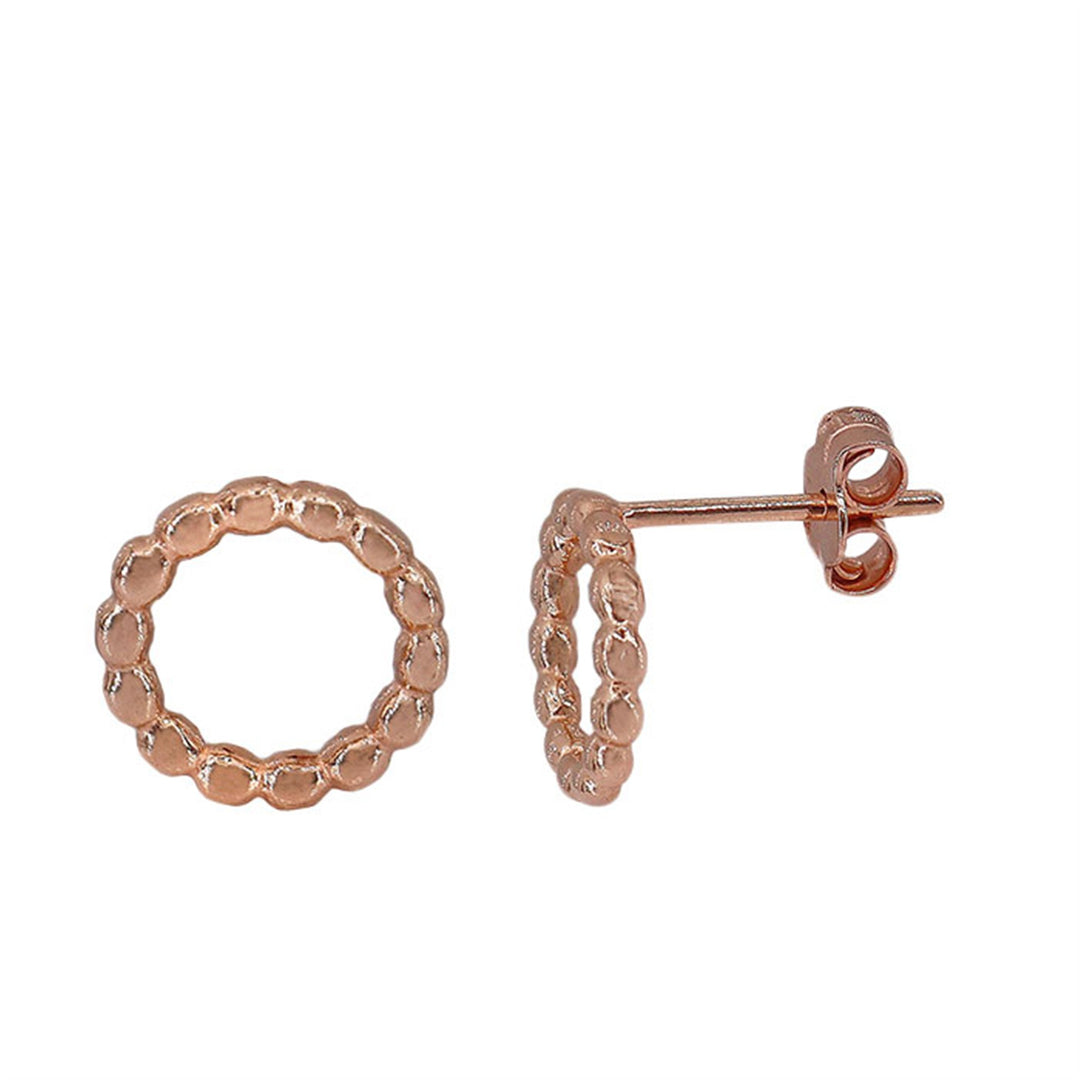 Sterling silver with rose gold, 10mm beaded halo stud earrings