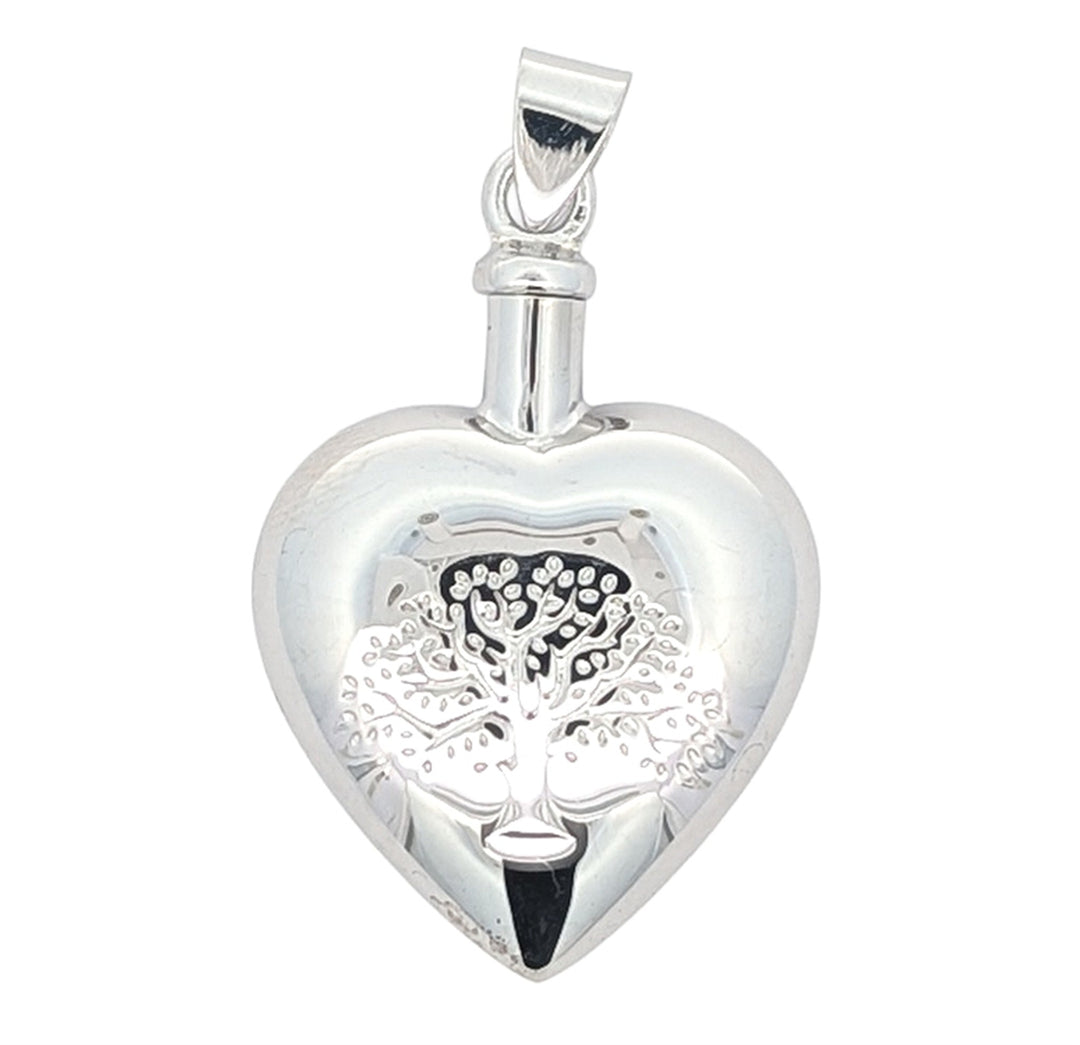 Sterling Silver Heart Tree Of Life Urn Pendant 23.5mm x 24mm